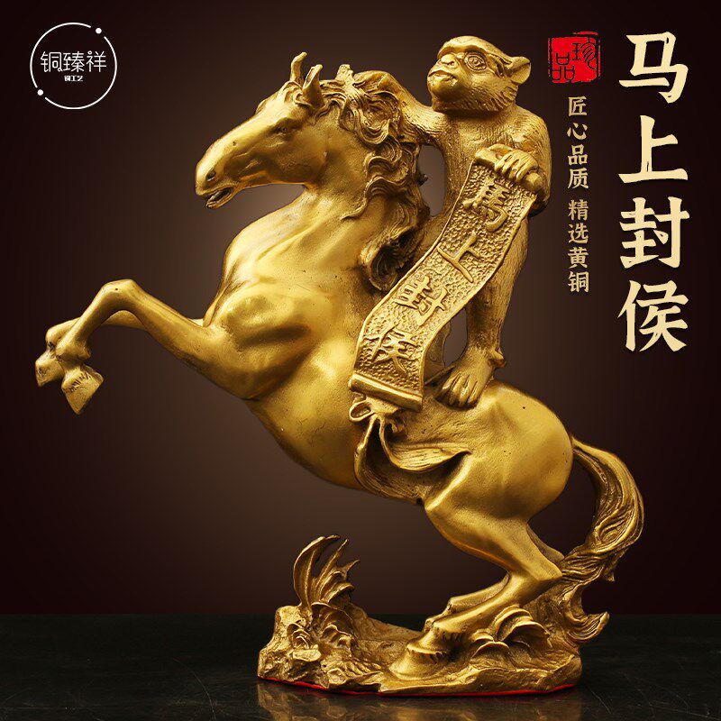 📚 黄铜马上封候客厅招办公室工艺品财生肖马到成功马上传令铜马大号