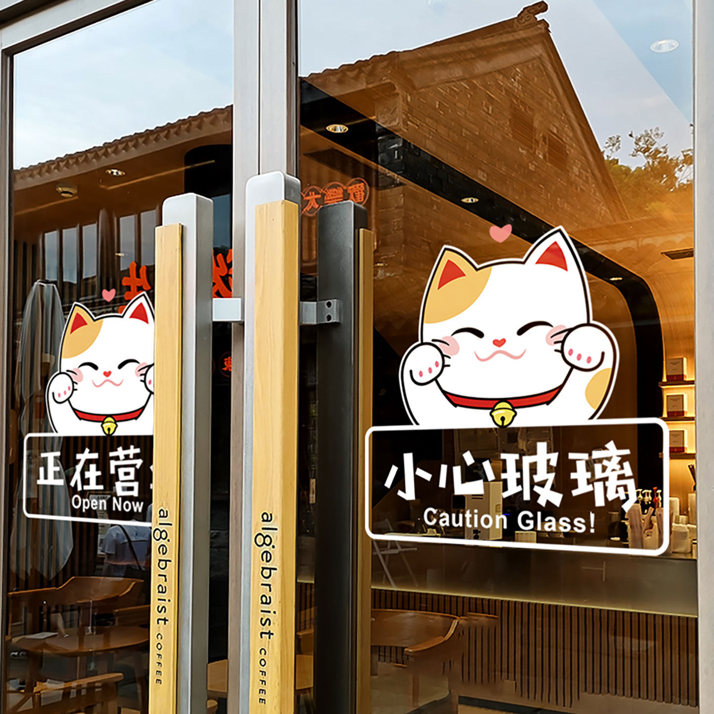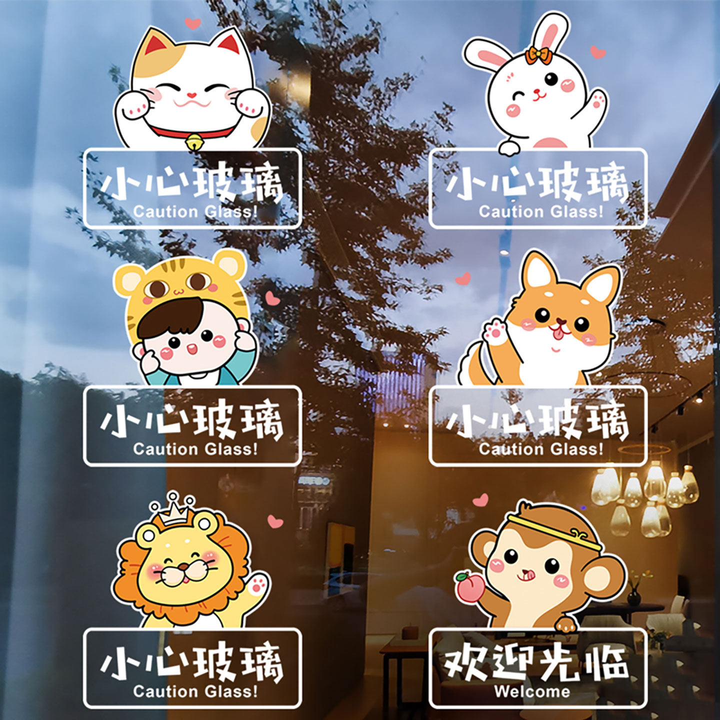 📚 小心玻璃提示贴店铺欢迎光临推拉门贴当心玻璃腰线贴静电防撞贴纸