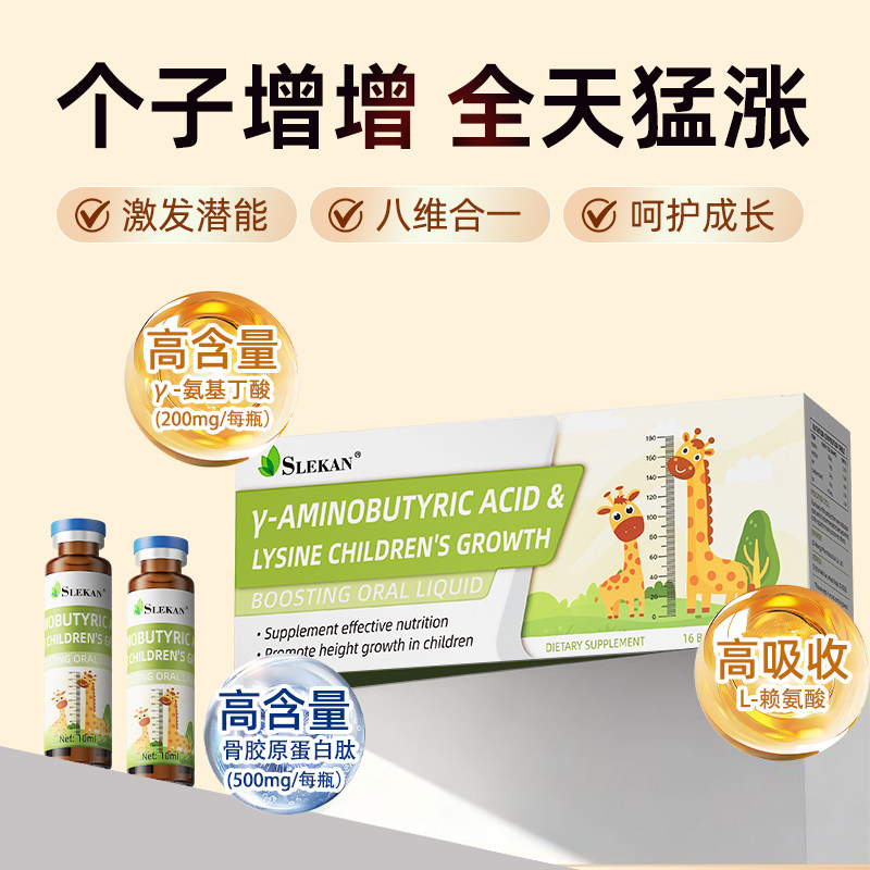 📚 SLEKAN氨基丁酸y赖氨酸GABA青少年儿童生长素助长素钙铁锌口服液
