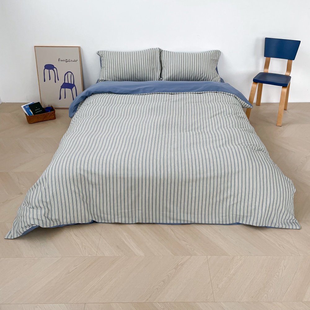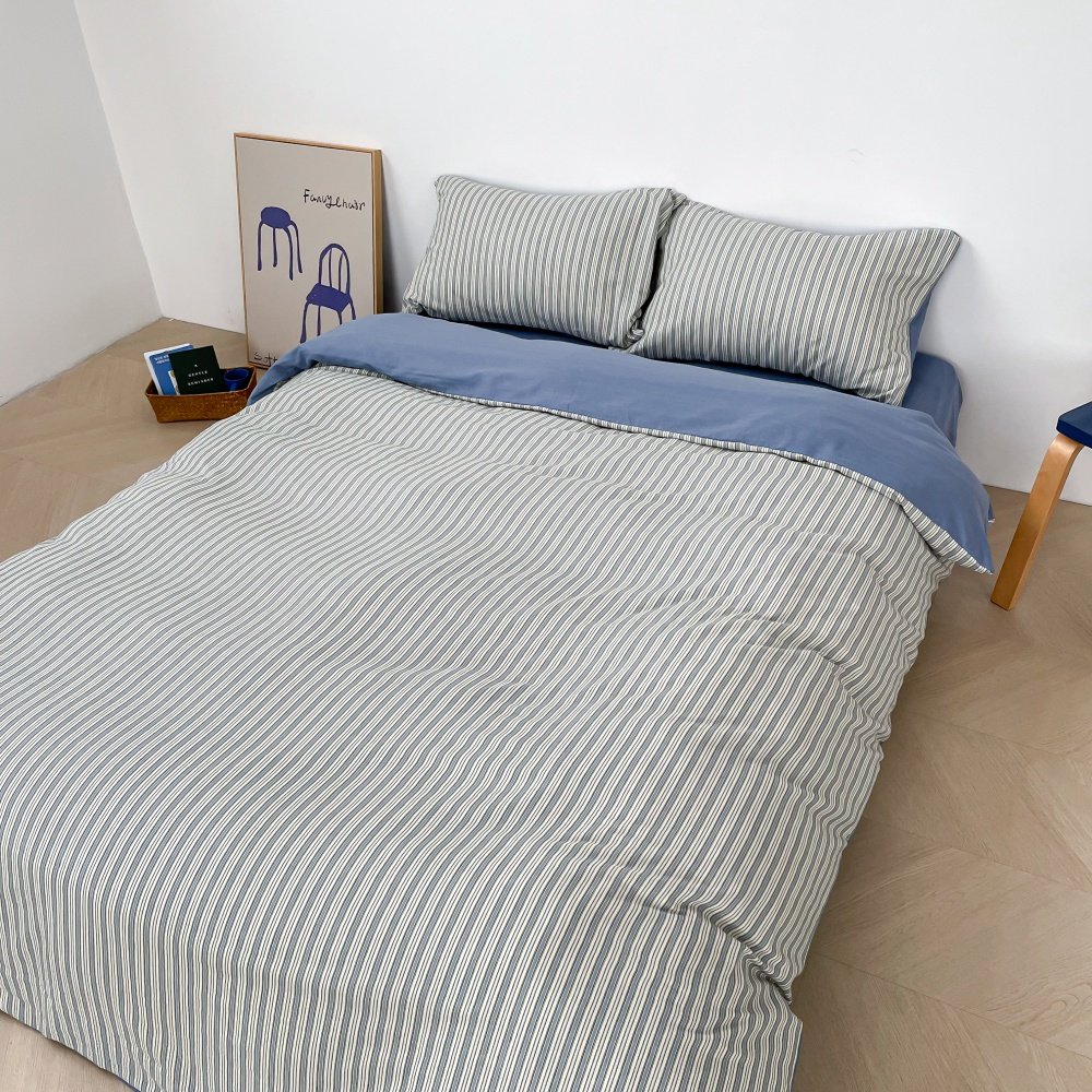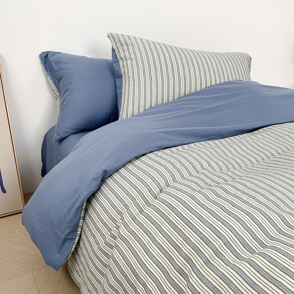 📚 新房客 复古牛仔丹宁蓝全棉四件套提花重工单人三件床单被套床笠
