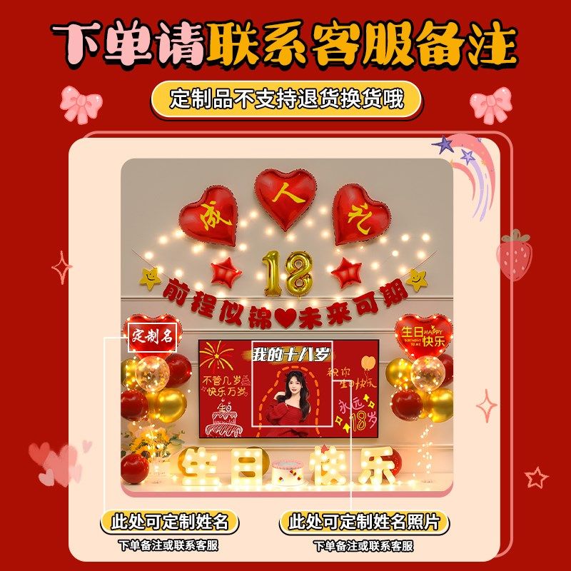 📚 18岁成人礼男女孩生日装饰快乐氛围场景客厅背景墙布置气球高级感