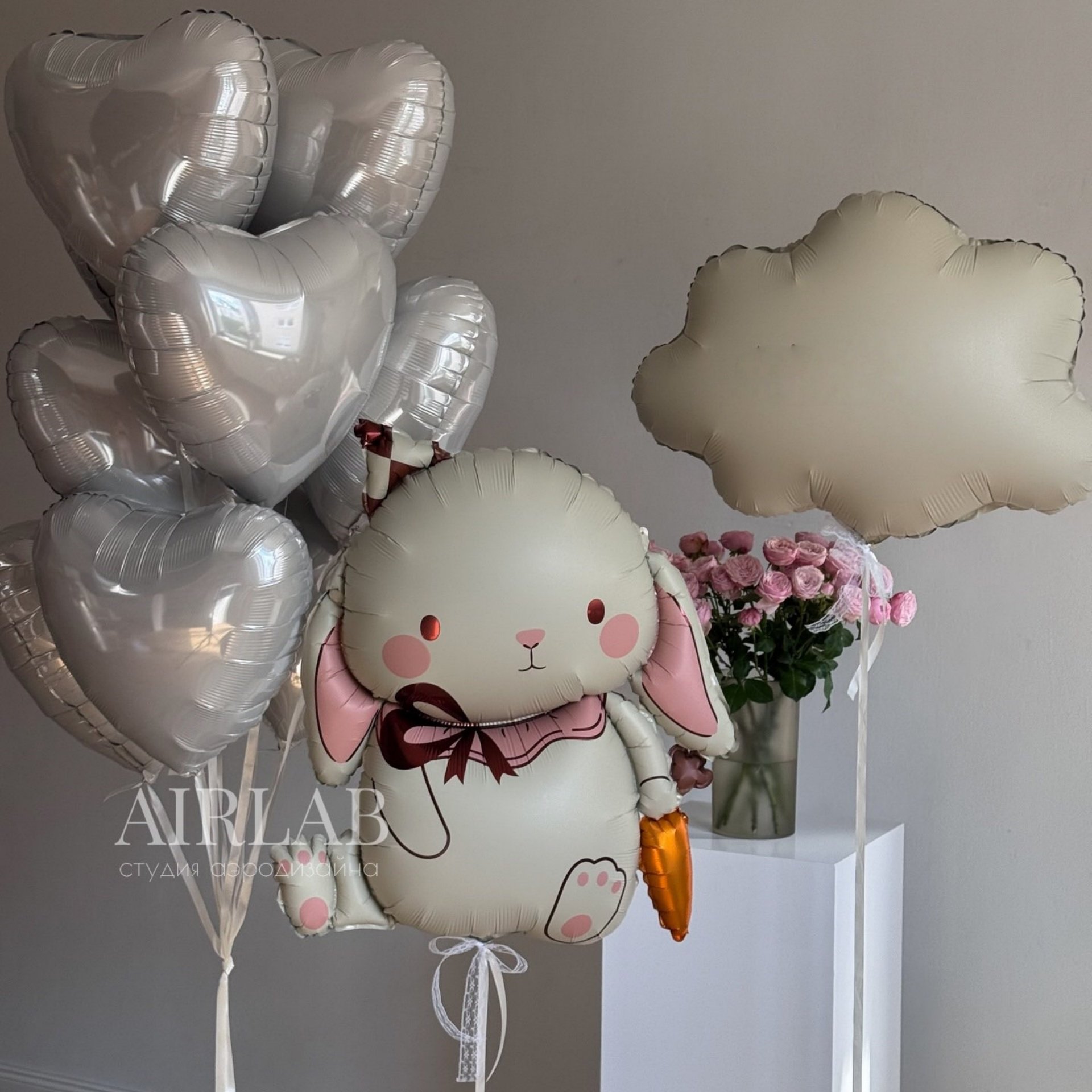 📚 兔子气球卡通动物铝膜球宝宝百天百日生日派对用品装饰一周岁布置