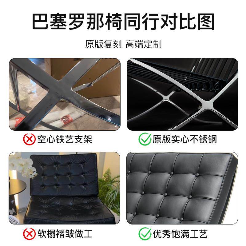 📚 需定制北欧巴塞罗那椅子Barcelona Chair现代真皮单人沙发设计师