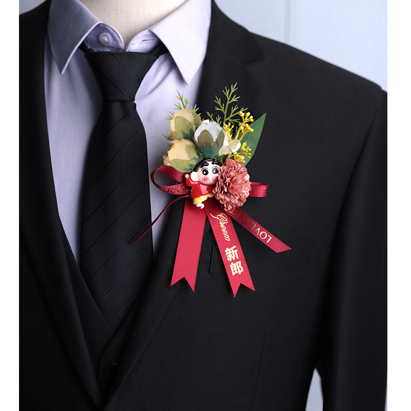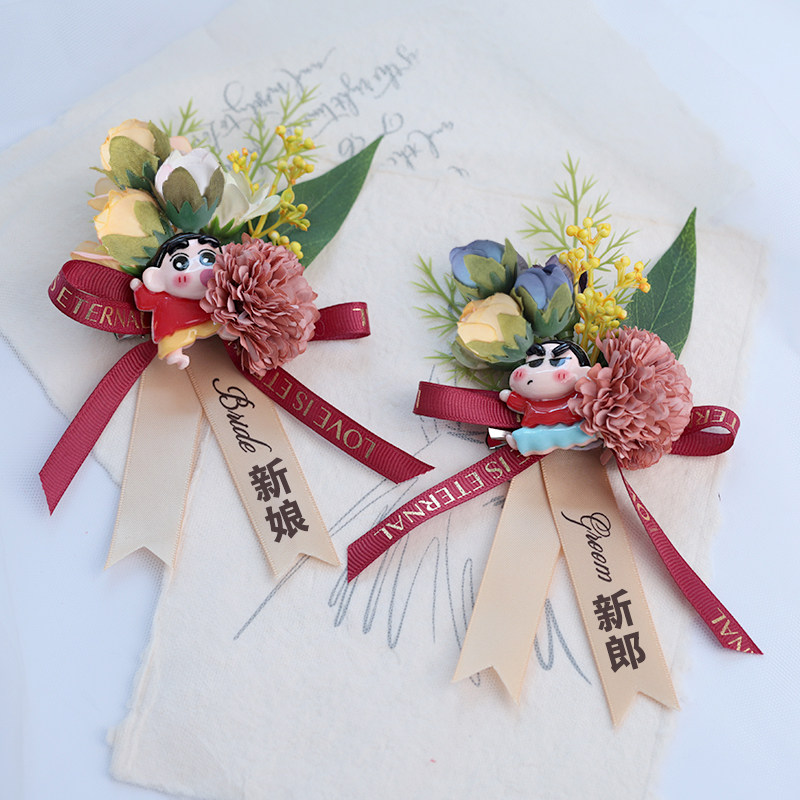 📚 伴郎伴娘胸花婚礼蜡笔小新卡通创意结婚襟花童兄弟团姐妹团手腕花