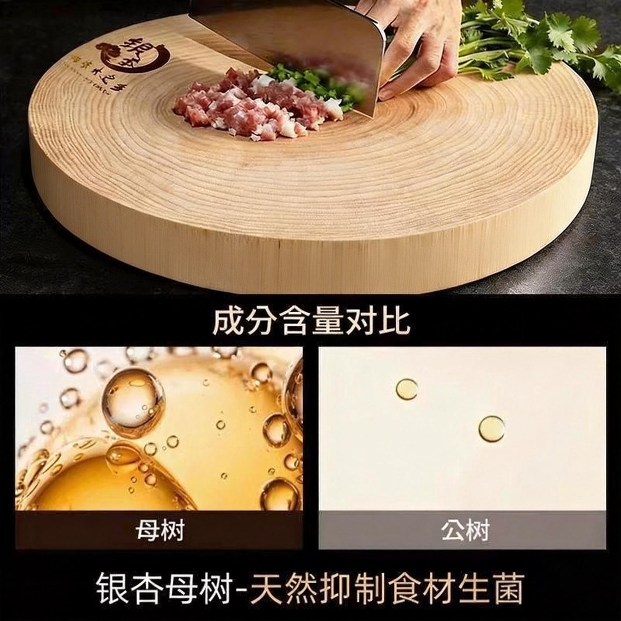 📚 正宗银杏木菜墩圆墩抗菌整木实木菜板无胶无漆百年厨房砧板家用