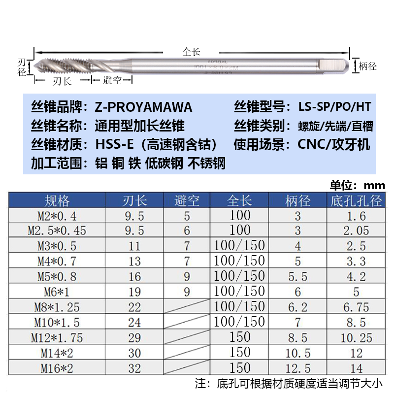 📚 Z YAMAWA日本进口加长螺旋丝锥加长杆柄100L/150铝用先端直槽丝攻