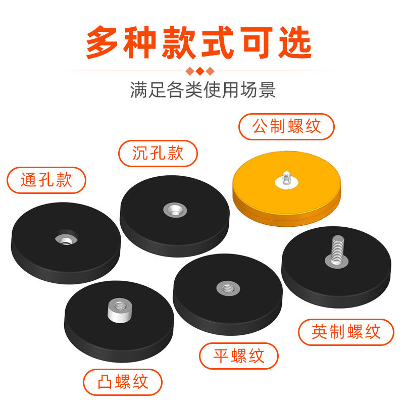 📚 包胶强磁吸盘汽车长条灯LED灯强磁底座防刮车顶包胶磁铁固定底座