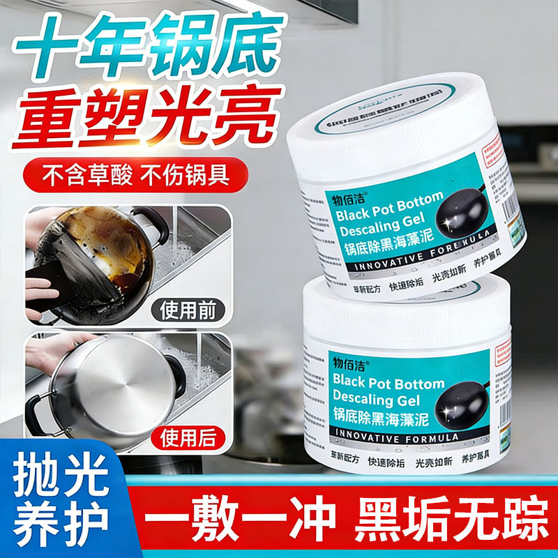 📚 锅底除黑海藻泥锅底黑垢清洁剂膜家用不锈钢多功能清洁膏洗锅神器