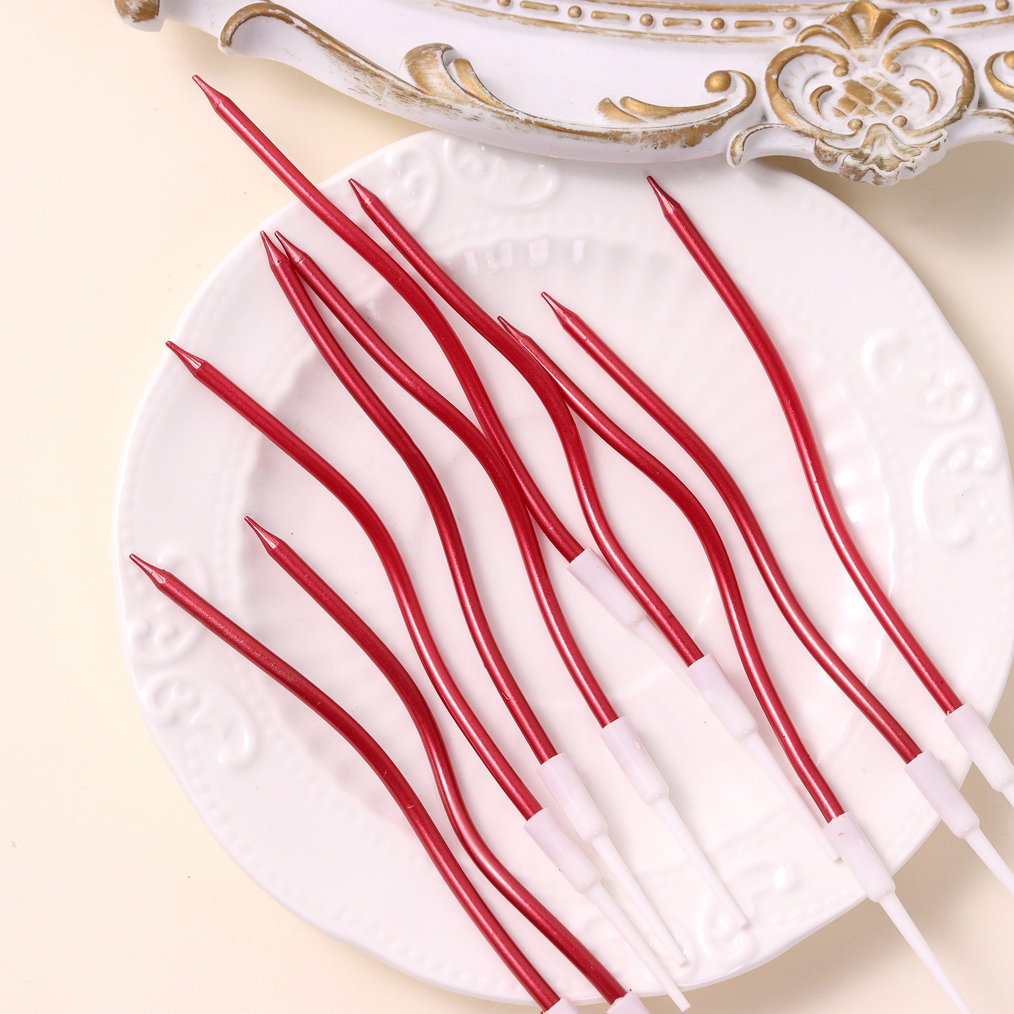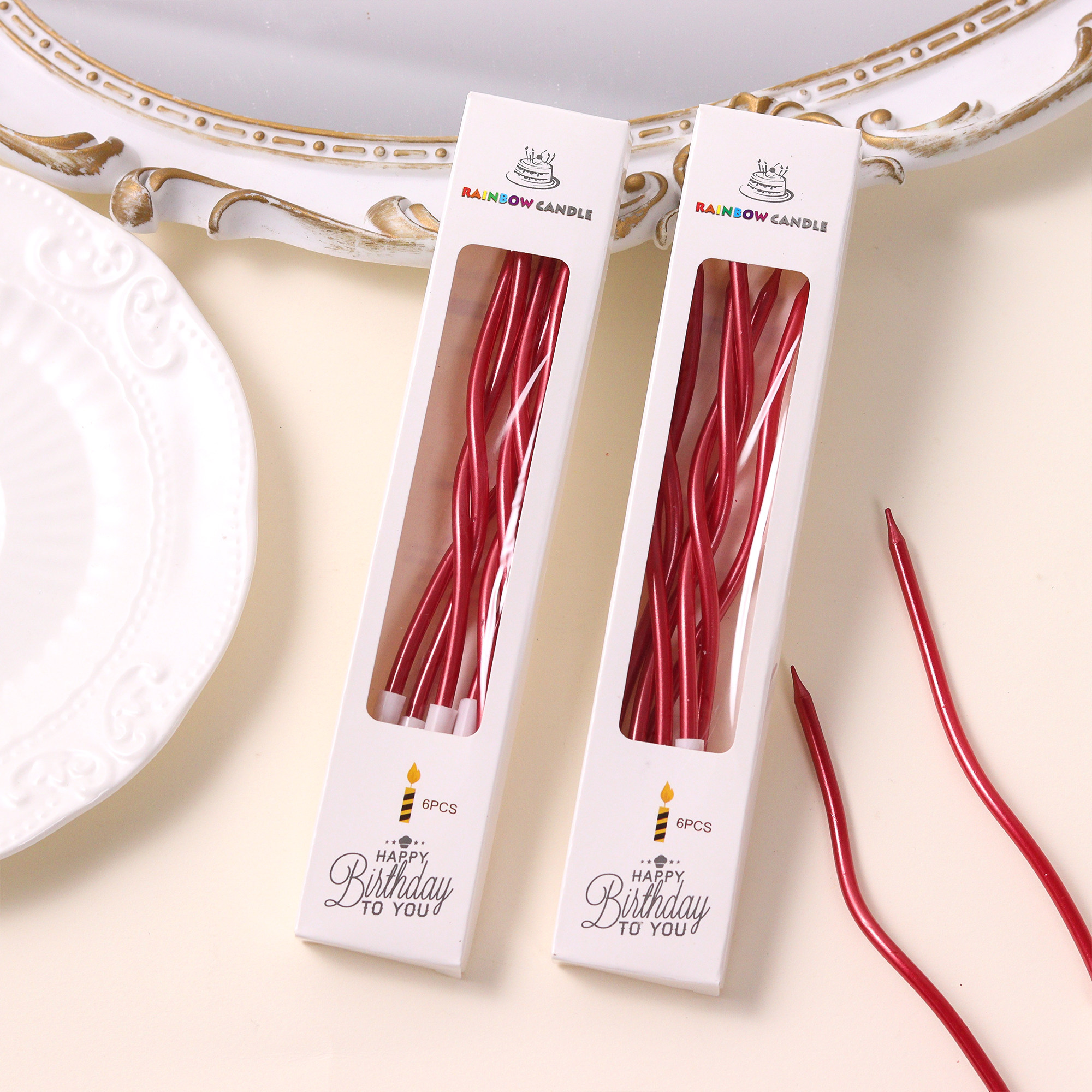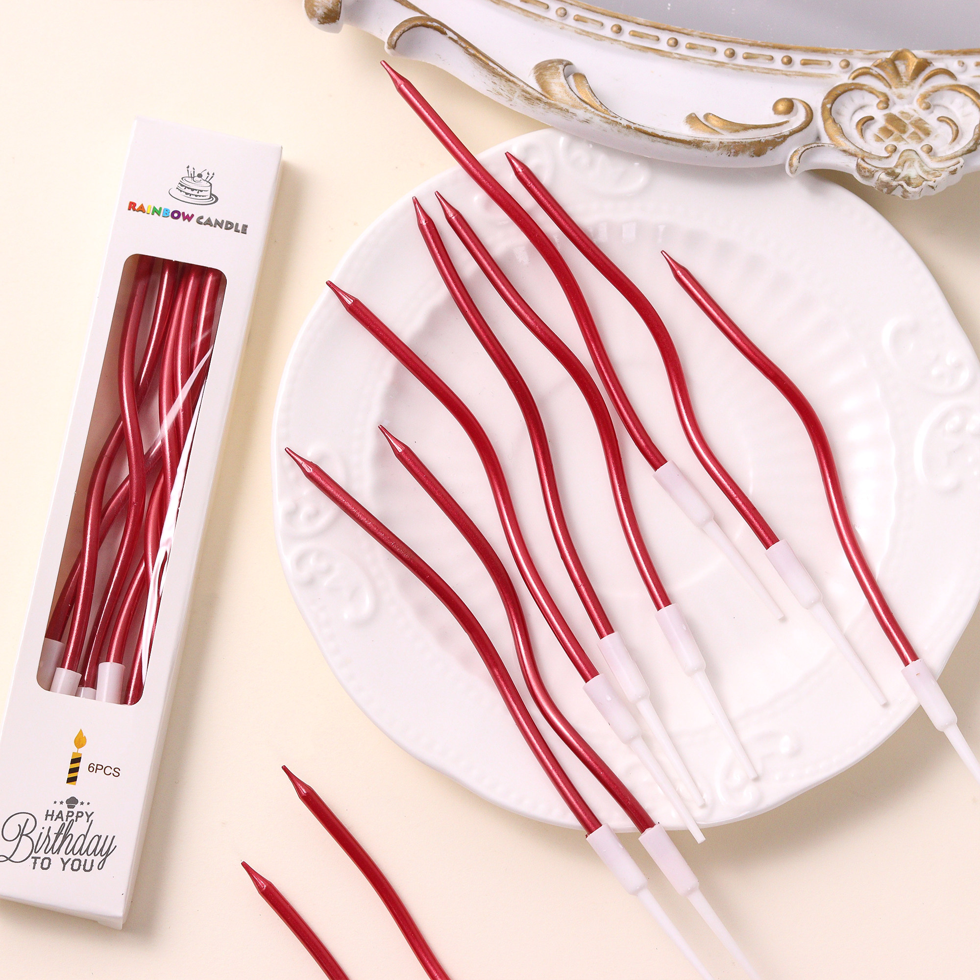 📚 网红红色曲线蜡烛蛋糕装饰情人节新年螺旋弯曲蜡烛生日蛋糕插件