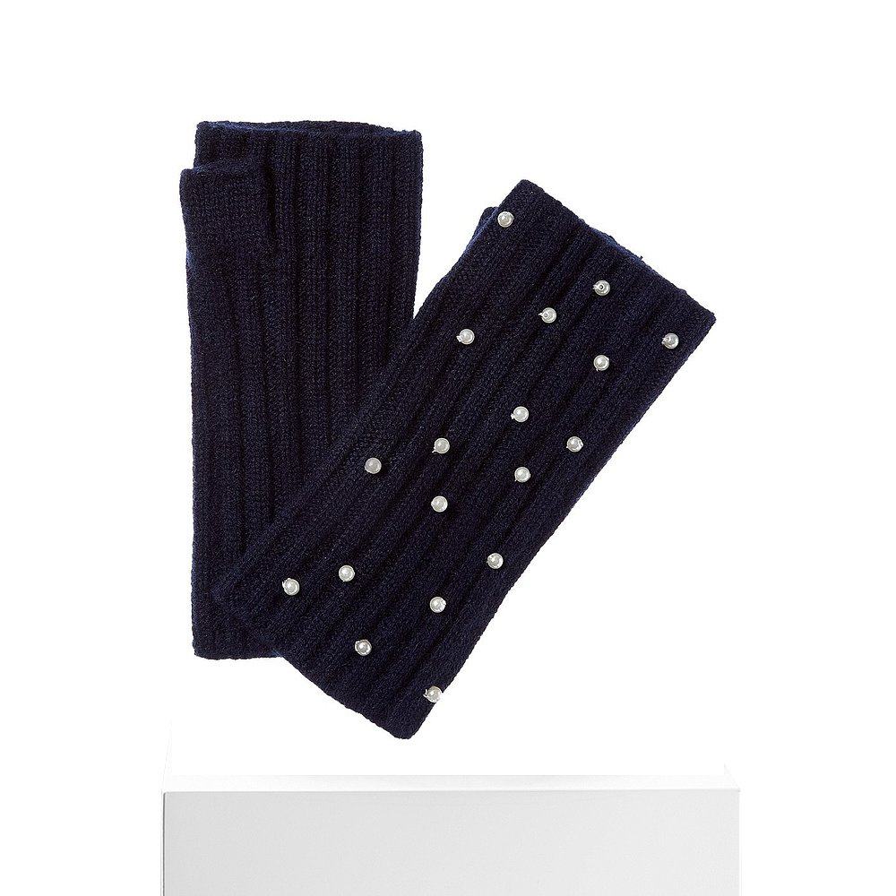 📚 自营sofiacashmere 2X2 Rib Fingerless Cashmere Glove - navy