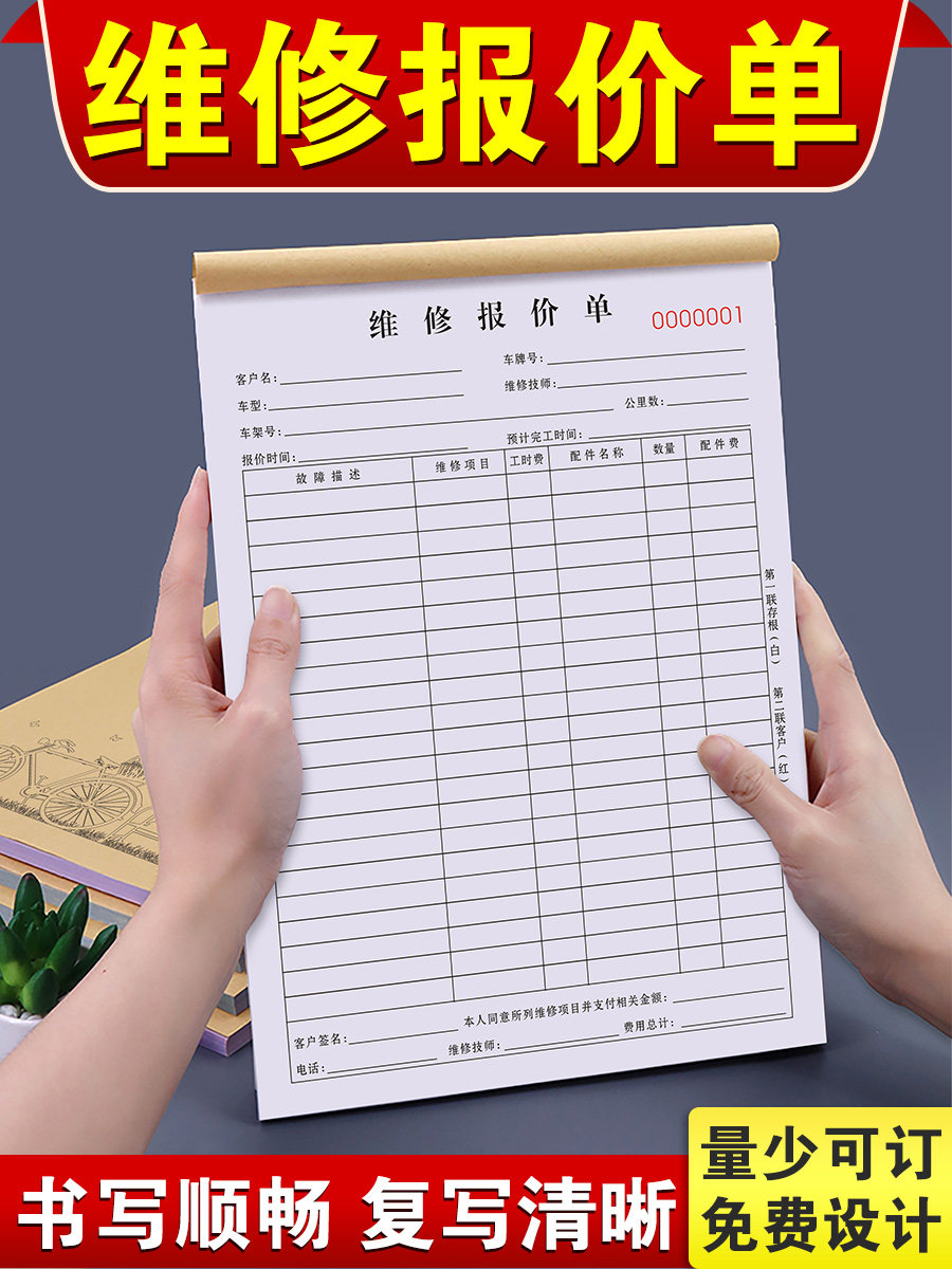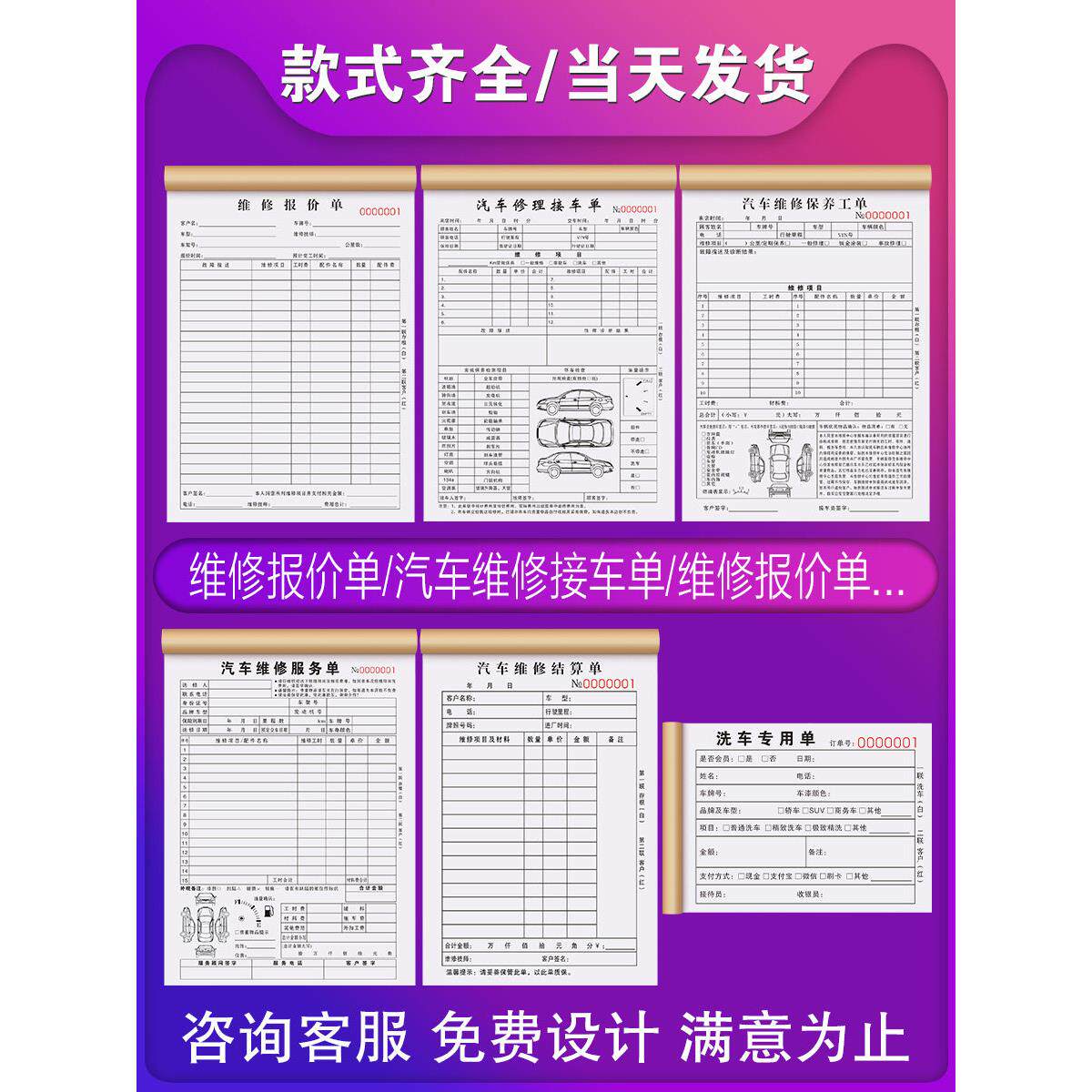 📚 汽车维修报价单两联修理厂工时服务明细表修车保养工单接车单机修