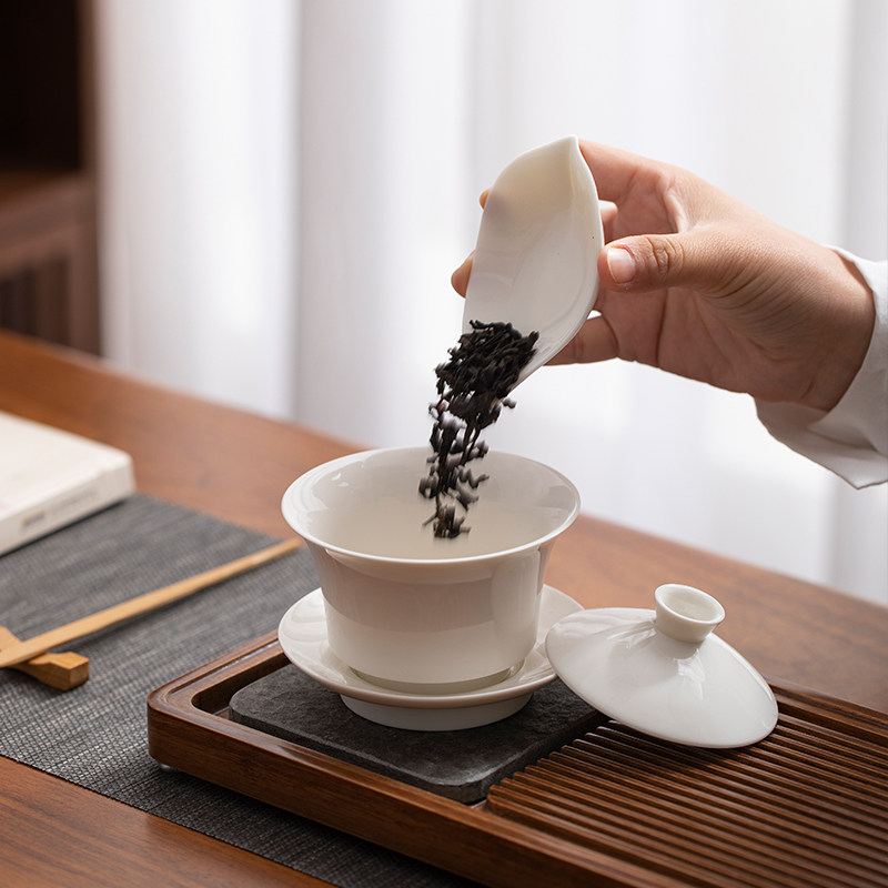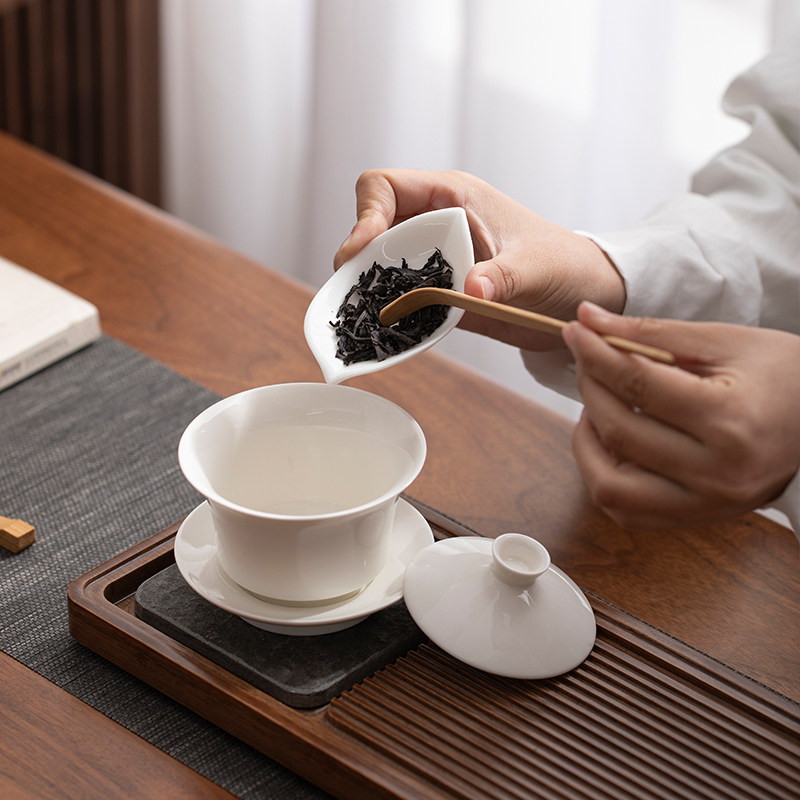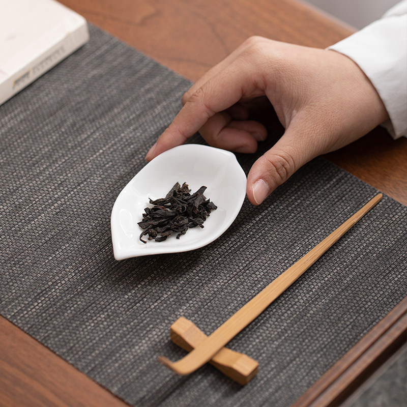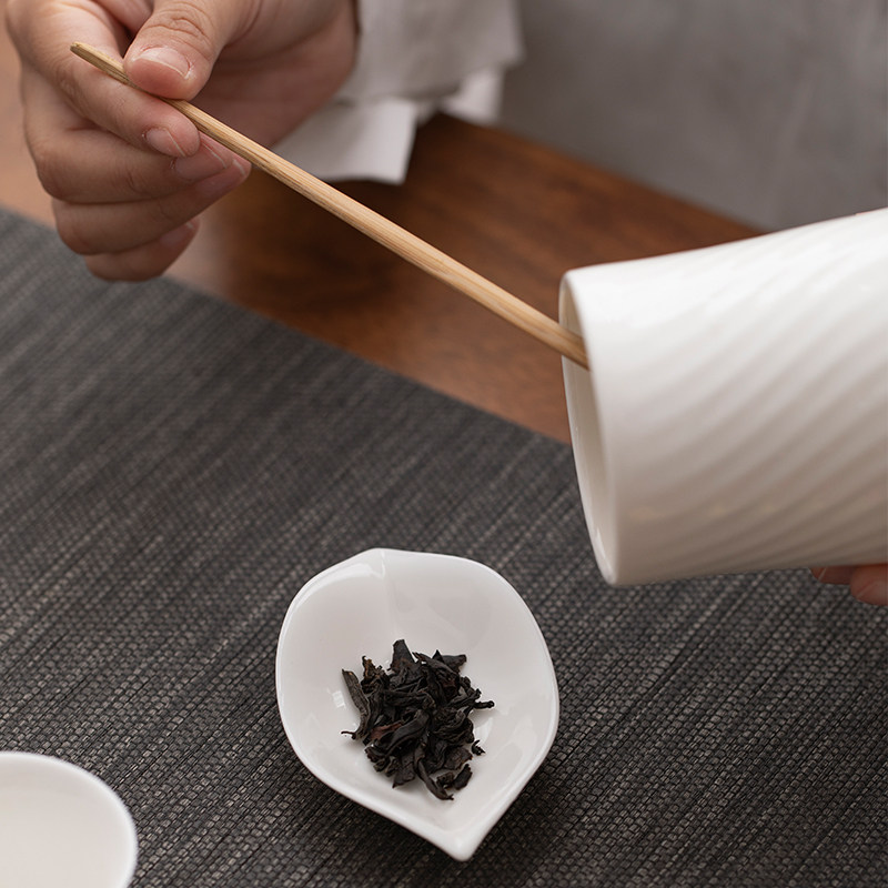 📚 羊脂玉白瓷茶则三件套简约竹制赏茶荷分茶器茶拨茶勺功夫茶道配件