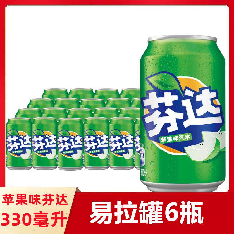 📚 可口可乐出品芬达苹果味汽水330ml*6罐整箱碳酸饮料果味饮品听装