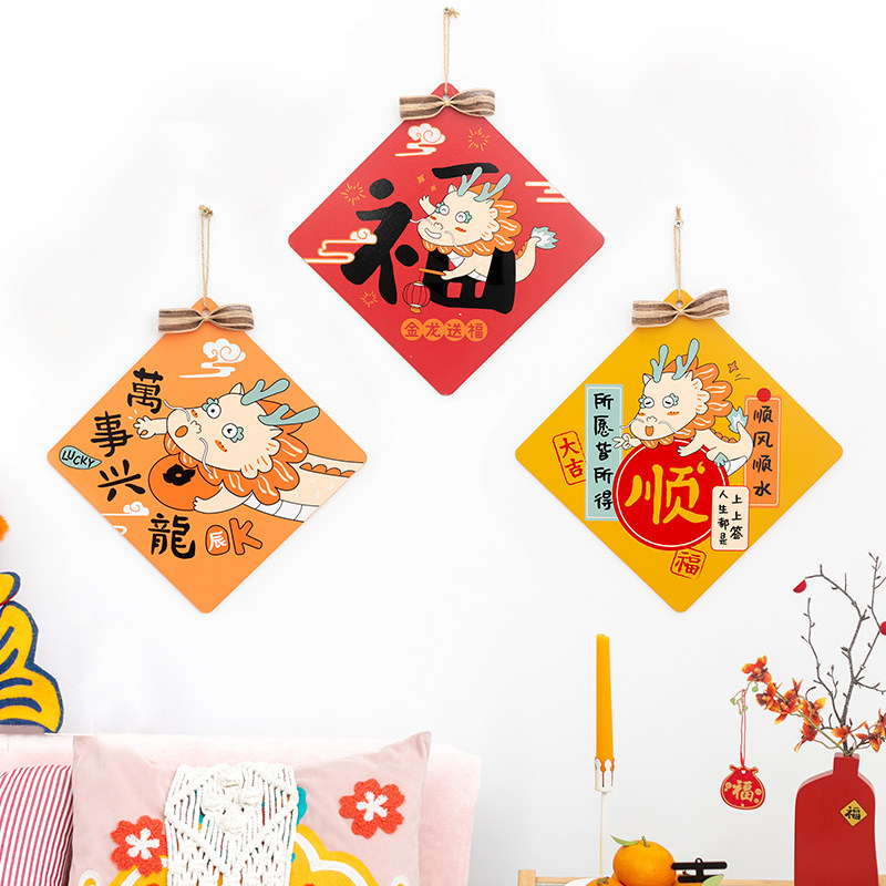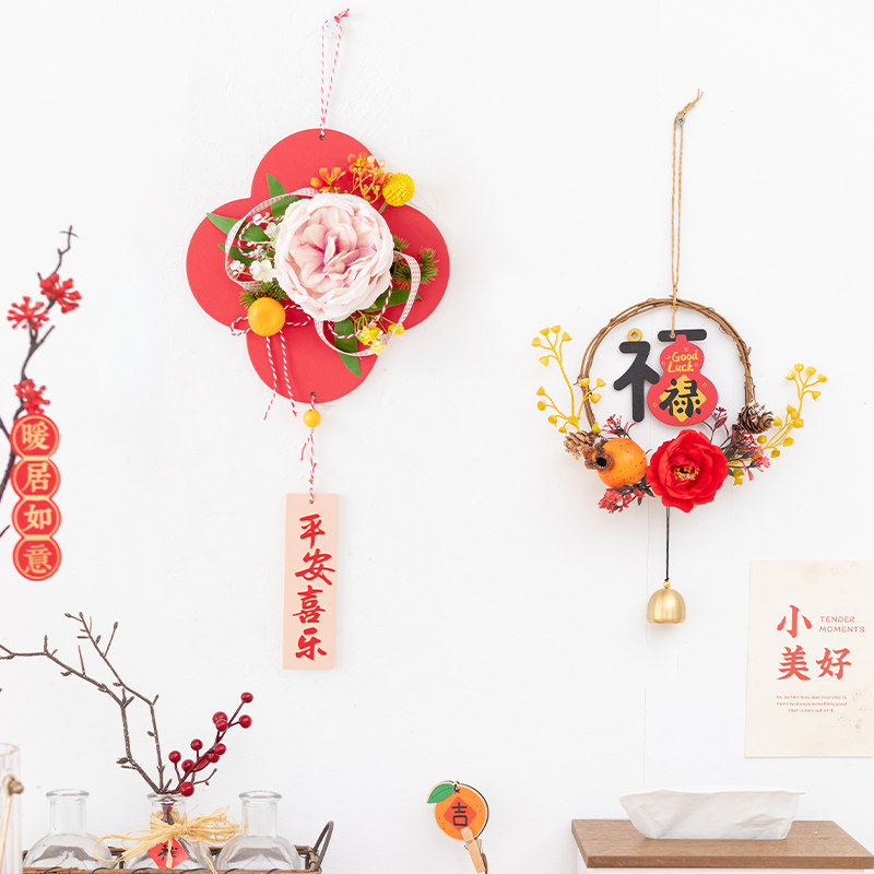 📚 阿楹 卧室中国结挂件过年喜庆装饰橘子乔迁门把手吊饰入户小花环