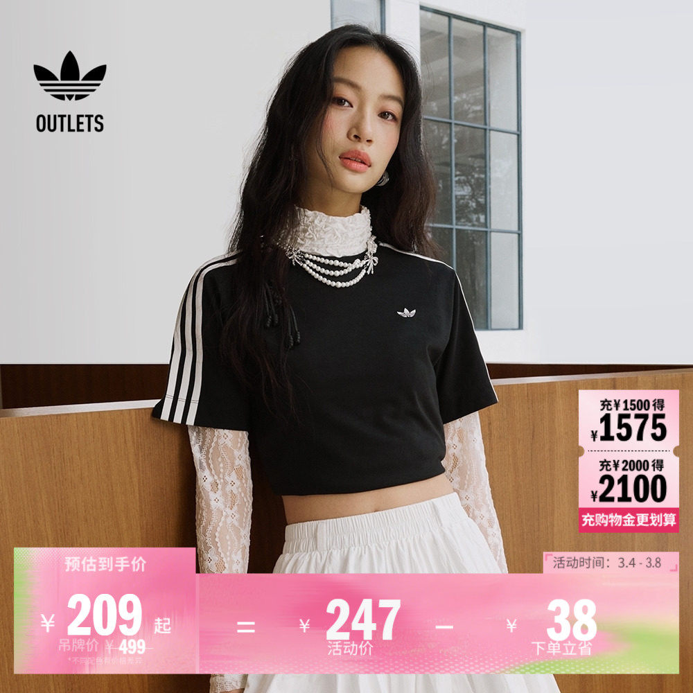 📚 新中式纯棉上衣圆领短袖T恤女夏adidas阿迪达斯官方outlets三叶草