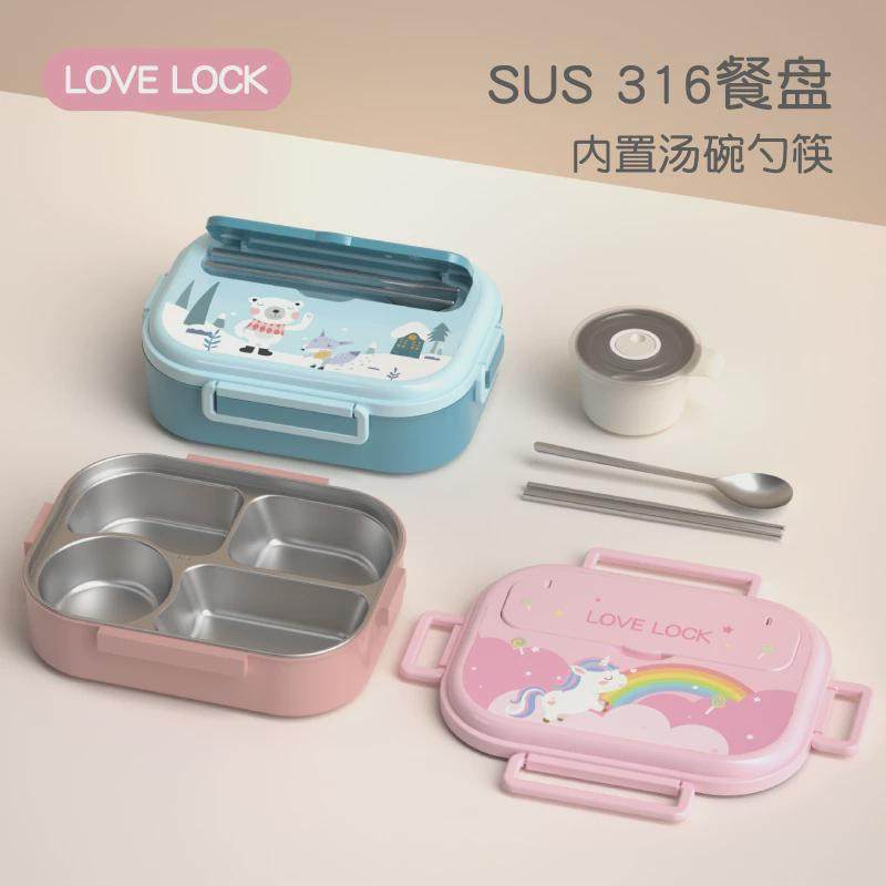 📚 韩国316不锈钢儿童饭盒卡通保温餐盒分格小学生上班族便当盒餐盘