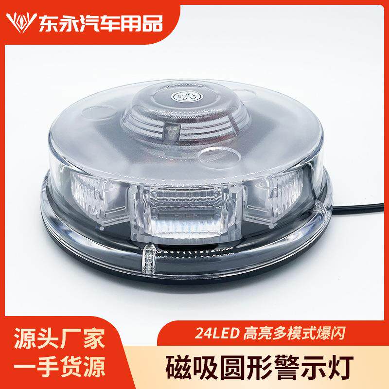📚 车载24LED汽车工程车圆形磁吸警示灯安全信号灯爆闪灯12-24V通用