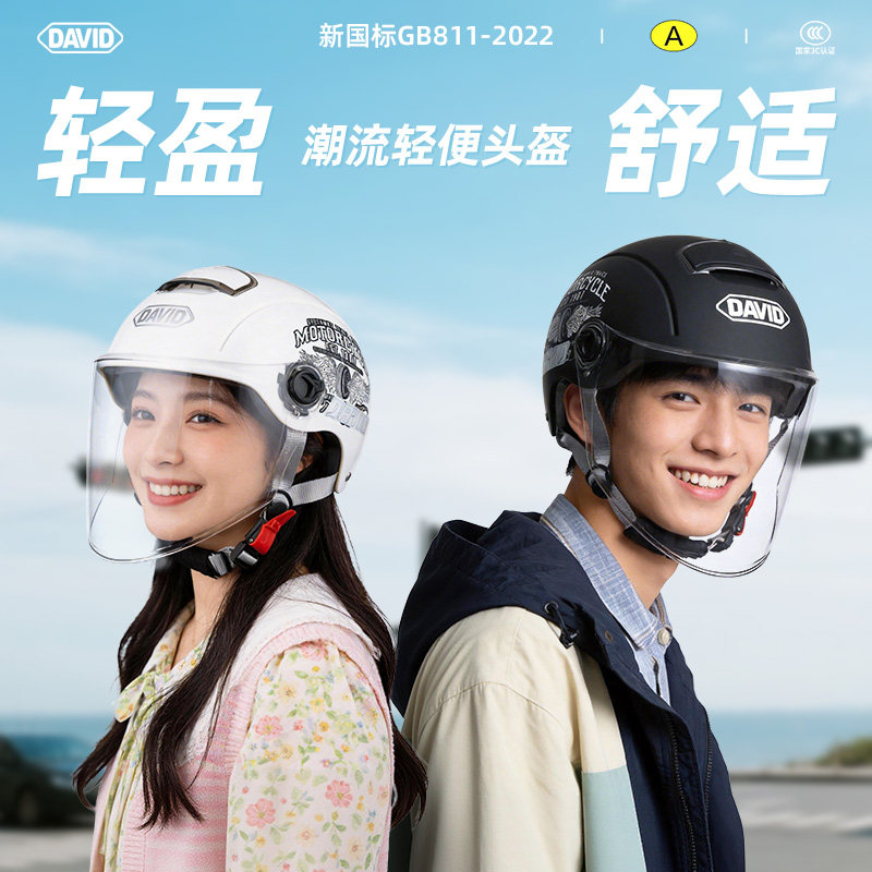📚 大卫3C认证电动车头盔男女四季电瓶摩托车三c秋夏季款防晒安全帽