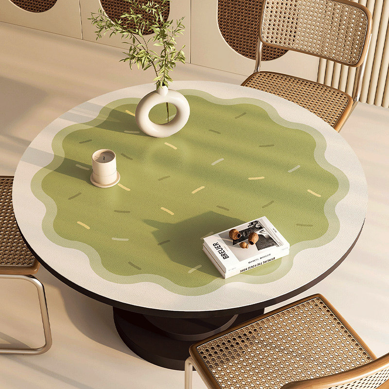 📚 圆形桌垫防水防油免洗餐桌小圆桌桌布轻奢高级感皮革防烫茶几台布