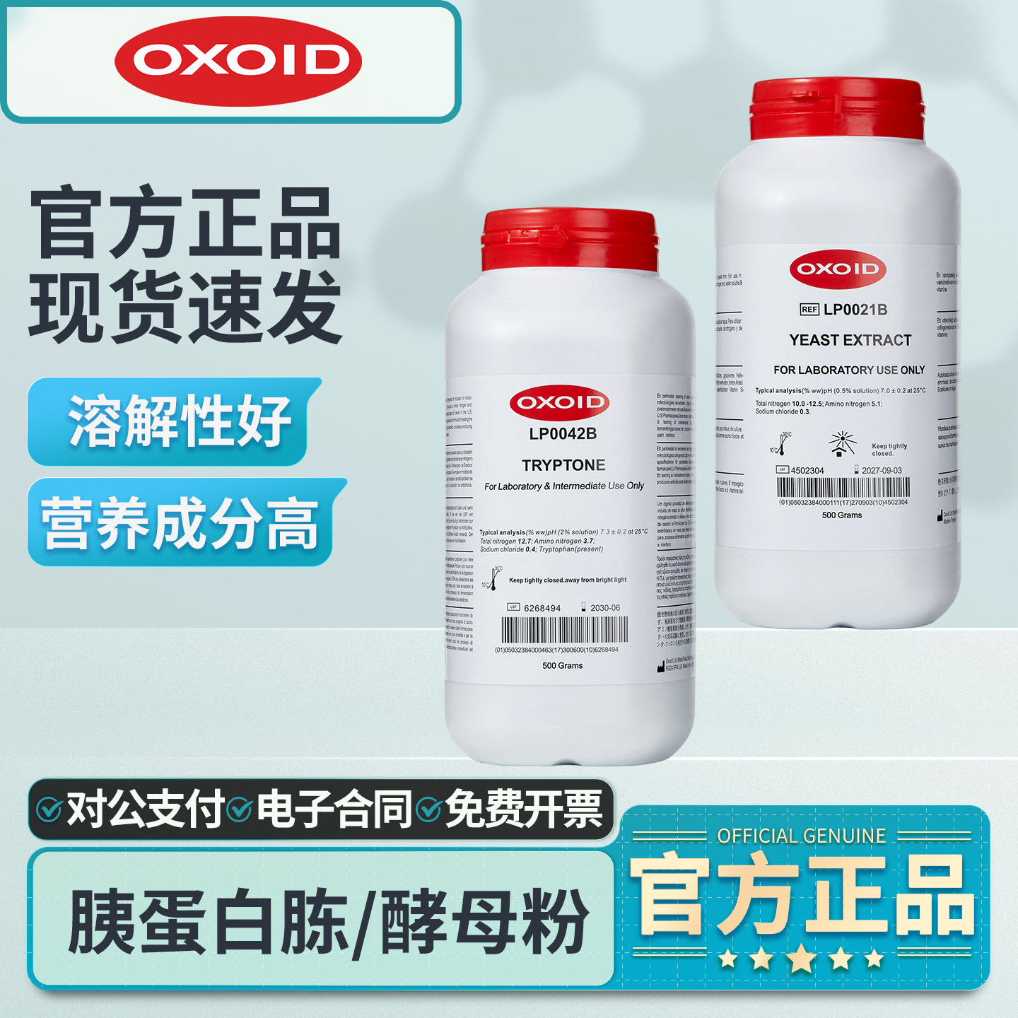 📚 OXOID胰蛋白胨酵母浸粉实验室用酵母提取物培养基原料LP0042B-1