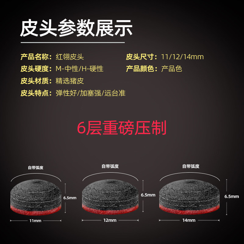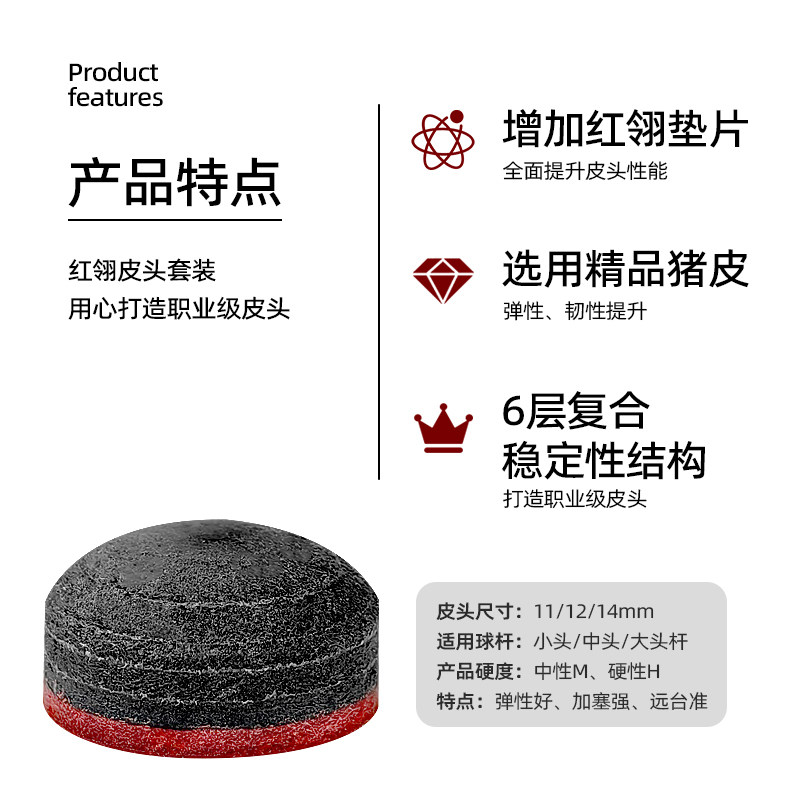 这款皮头小头设计精致,红翎点缀,显得非常时尚。搭配枪头大头,无论是手感还是稳定性都非常出色。在中式球杆上使用,更是如虎添翼,让你的球技更加出色。🏆
