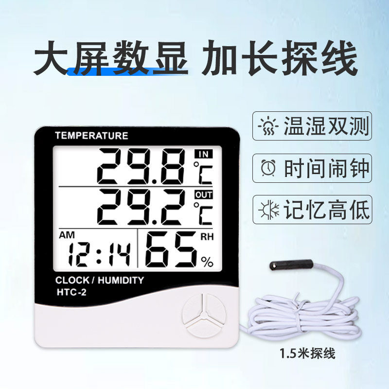 📚 温湿度计带探头实验室电子精准温度计大棚显示器室内家用闹钟室外
