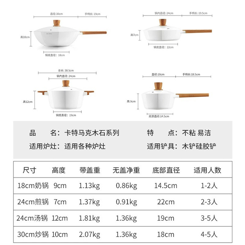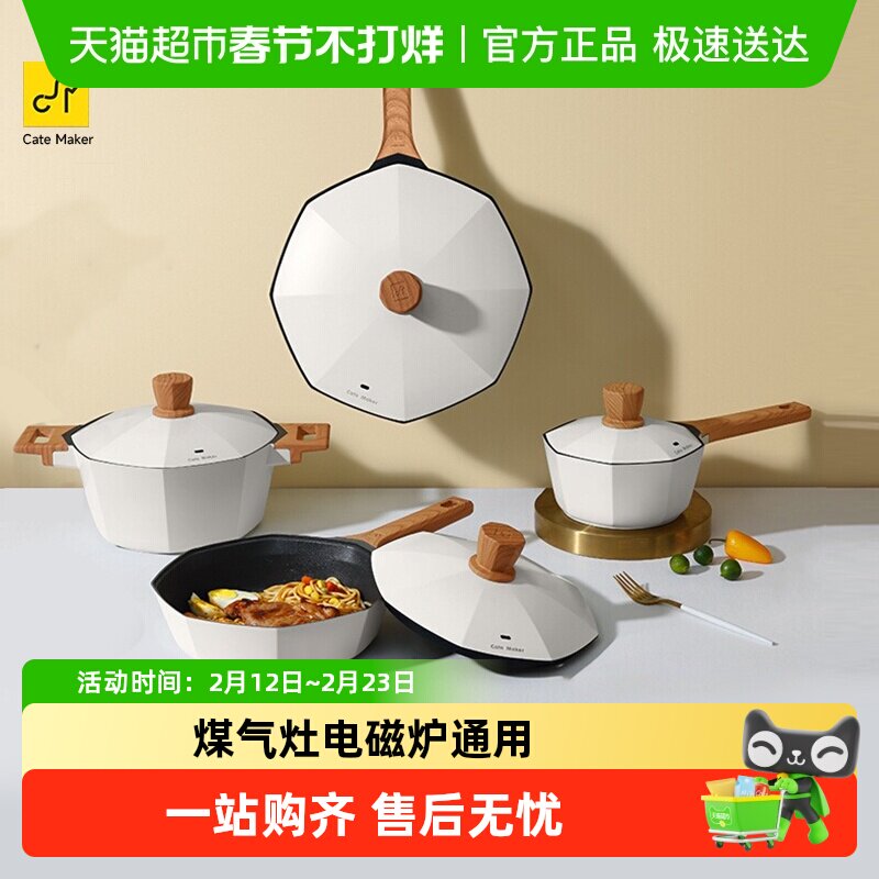 📚 卡特马克八角锅无涂层陶瓷不粘锅家用炒菜锅麦饭石锅燃气灶电磁炉