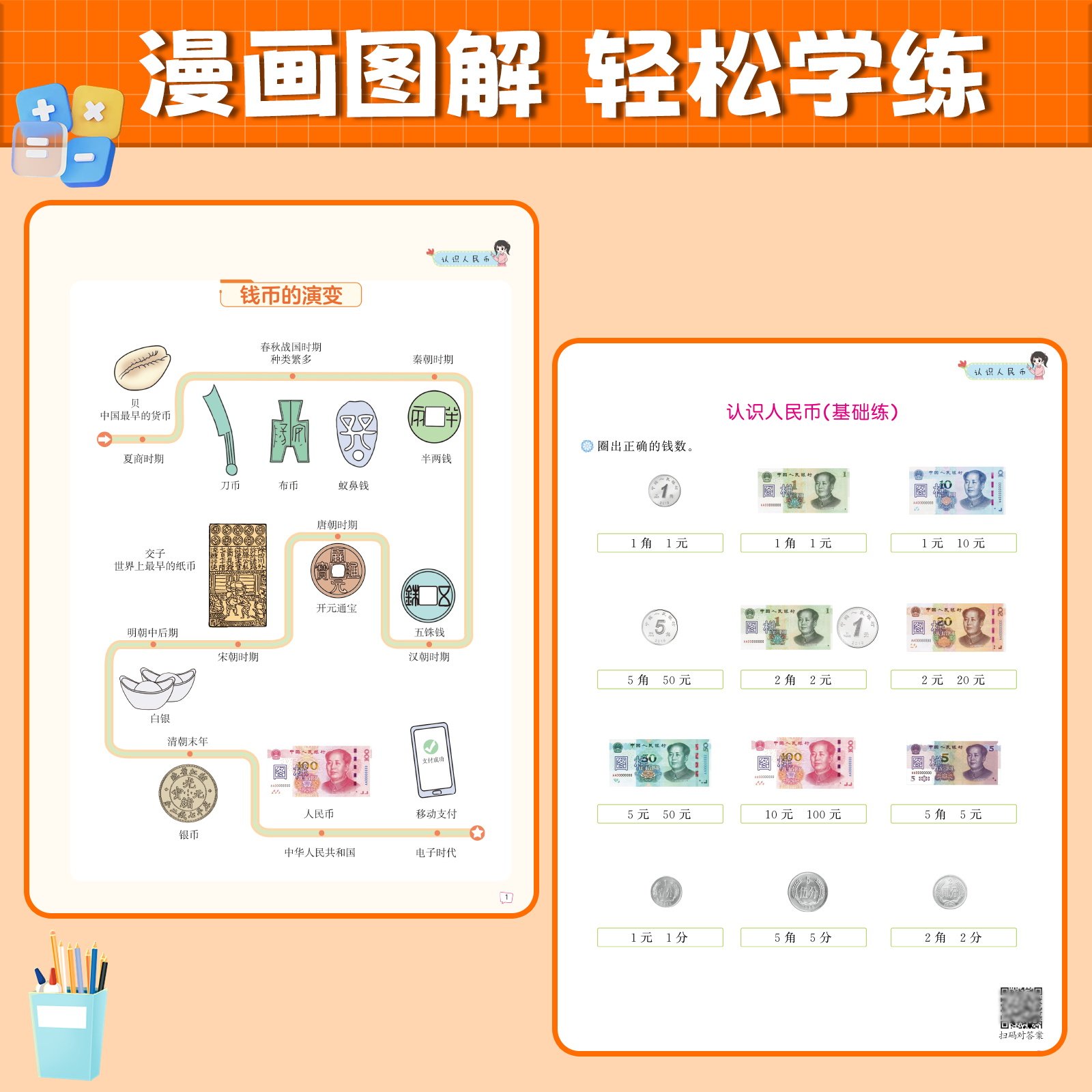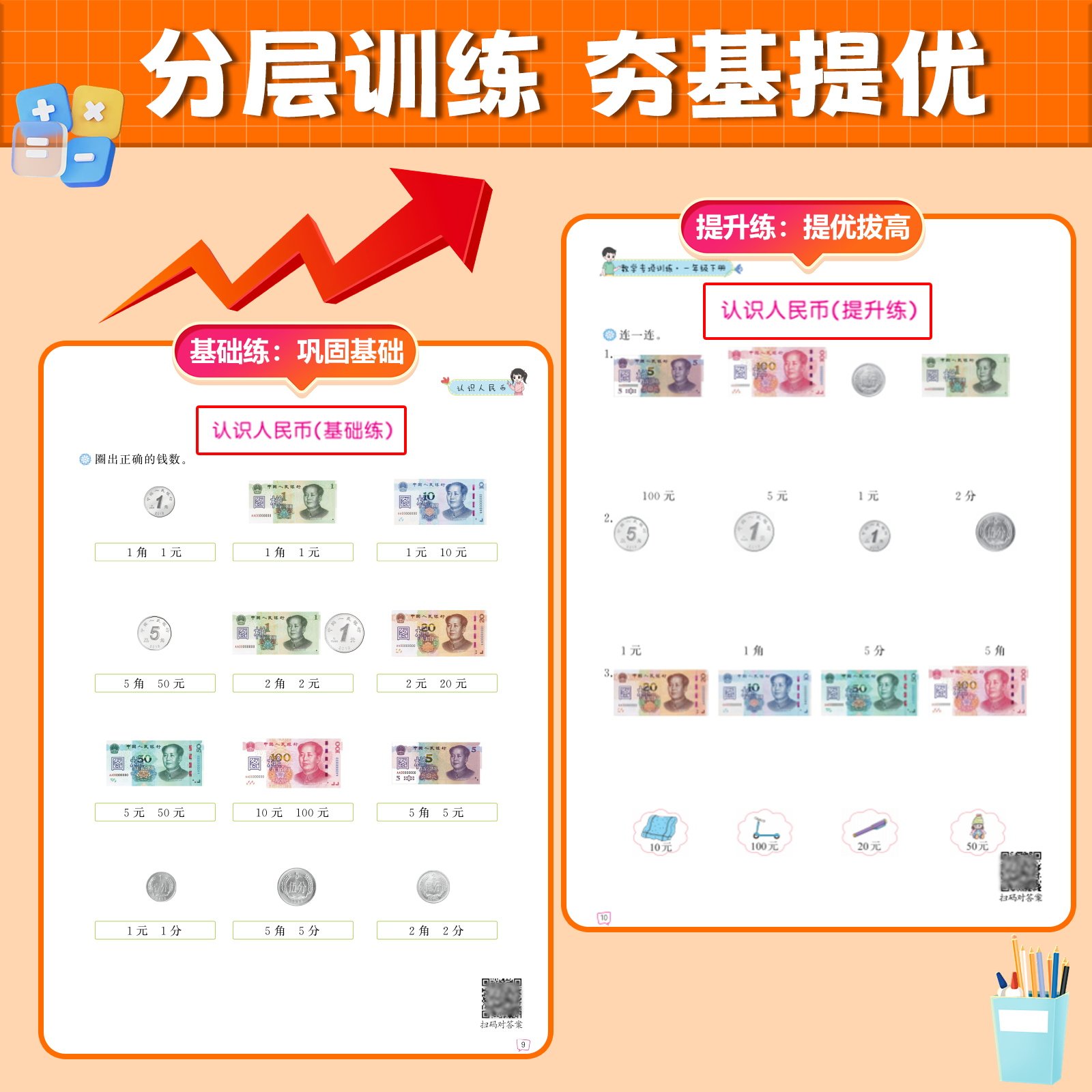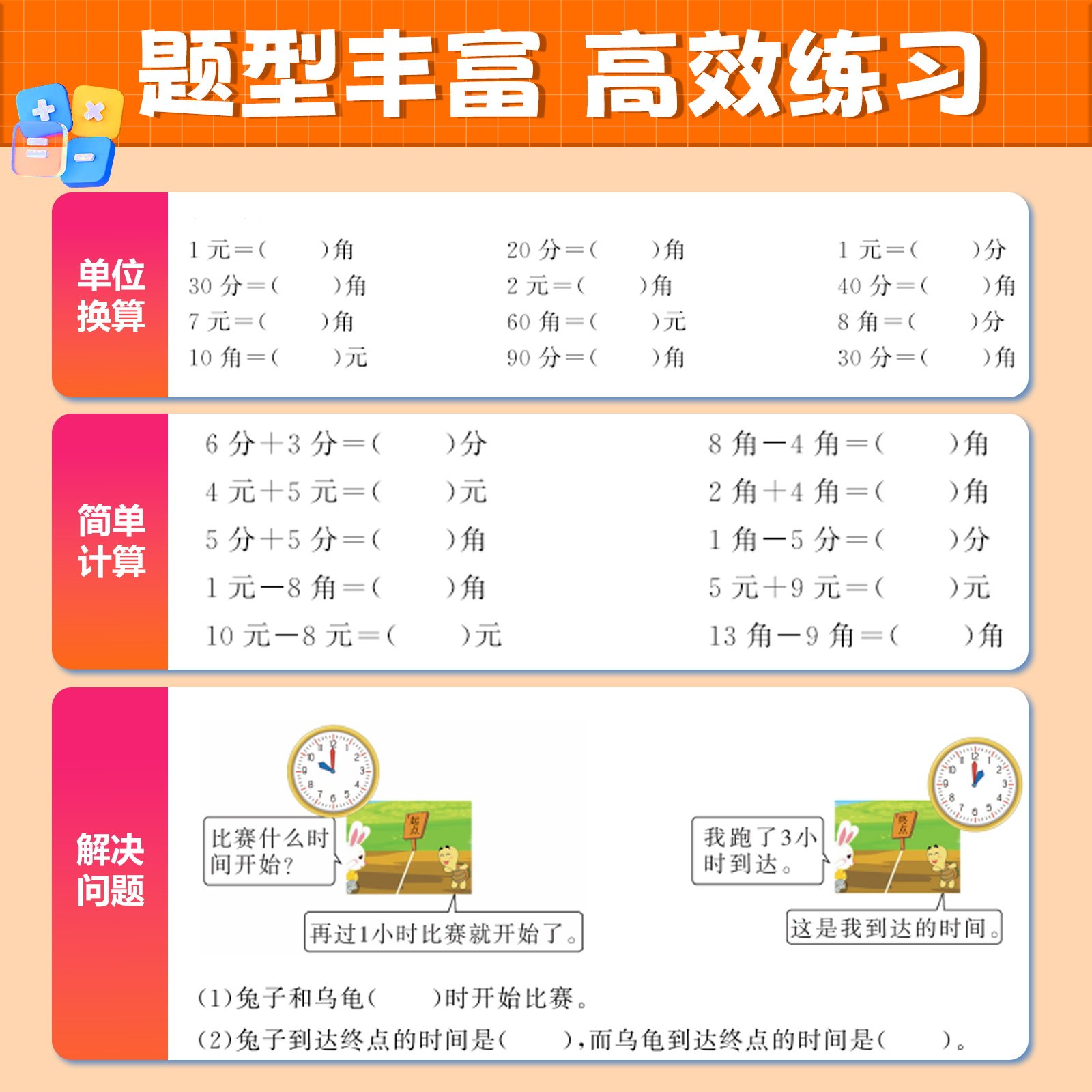 📚 一年级下册认识人民币专项练习元角分换算练习册 认识时间和钟表数学思维训练学习教具1年级下学期人教版钱币的学具同步应用题训练