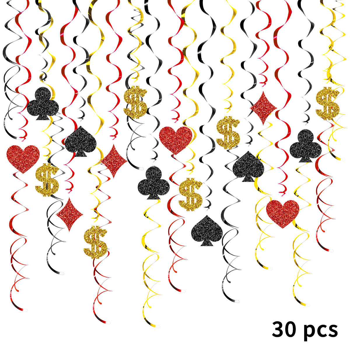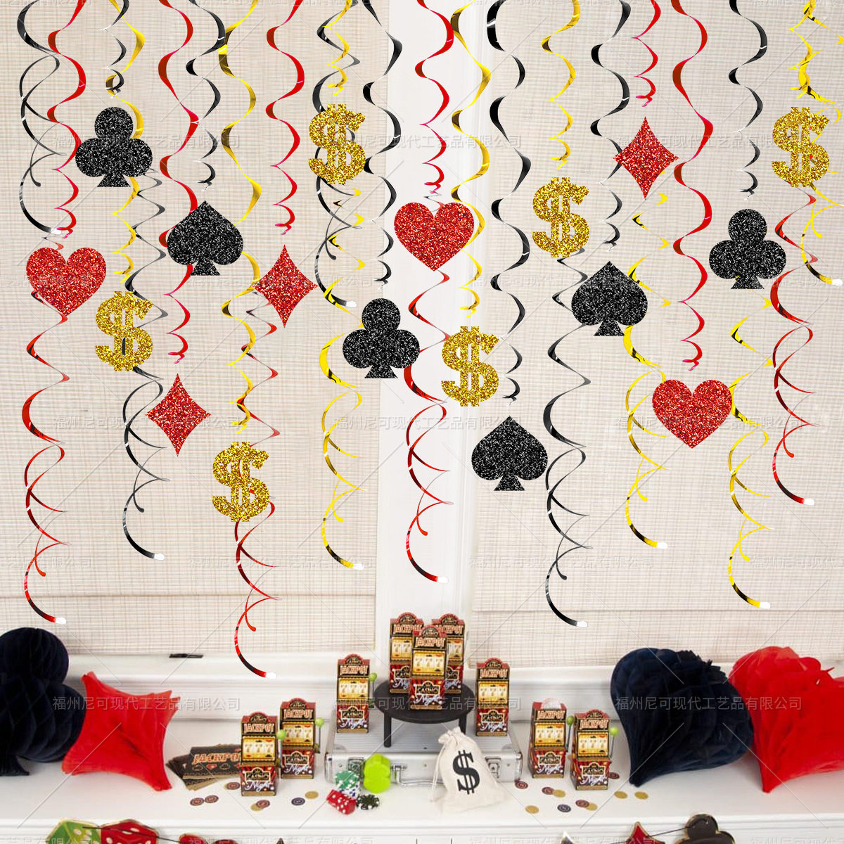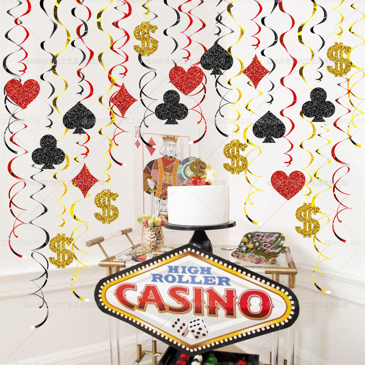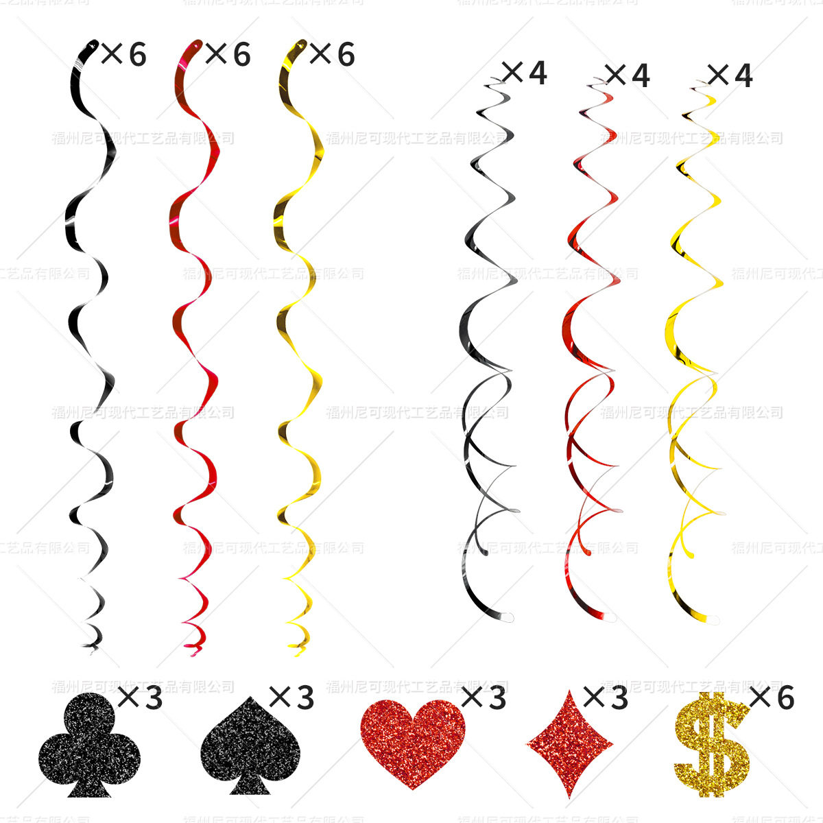 📚 拉斯维加斯赌场主题派对装饰扑克花牌色吊璇螺旋吊饰场景布置道具
