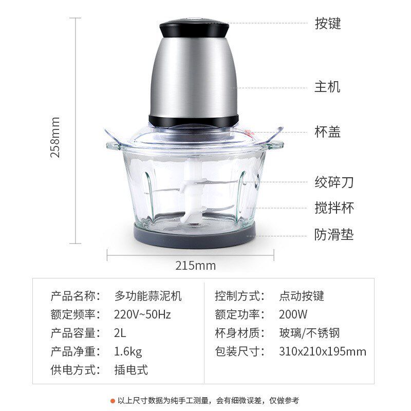 📚 速发可批打蒜器电动插电家用小型玻璃拉大L蒜搅碎机商用切蒜蓉捣