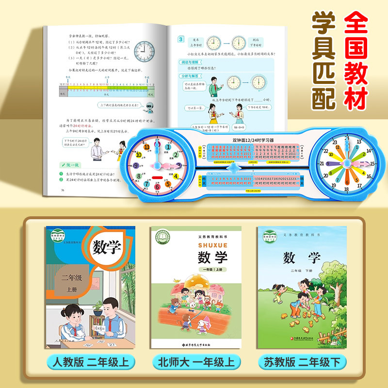 📚 三年级下册数学认识年月日联动双用钟面模型24时/12时计时法教具