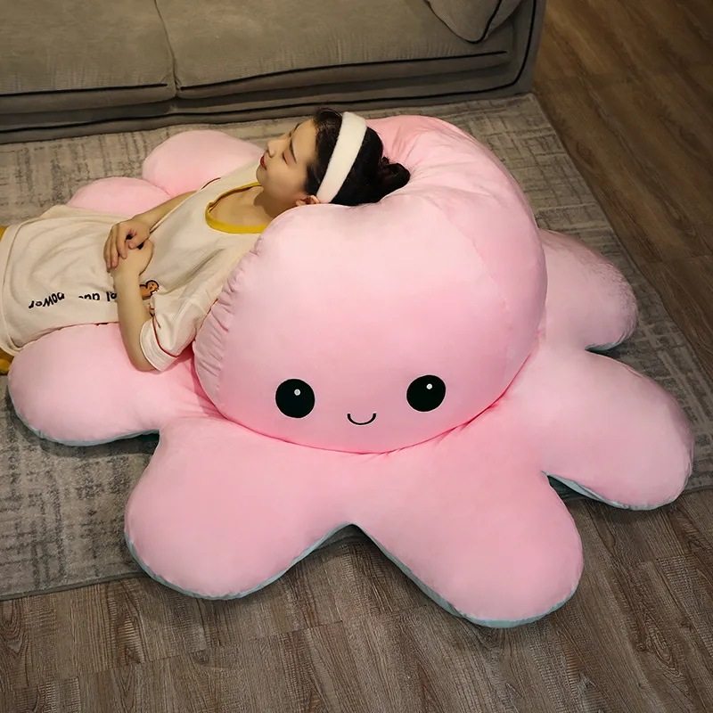 📚 超大变脸章鱼玩偶哭笑脸双面翻转水母巨型八爪鱼毛绒玩具解压发泄