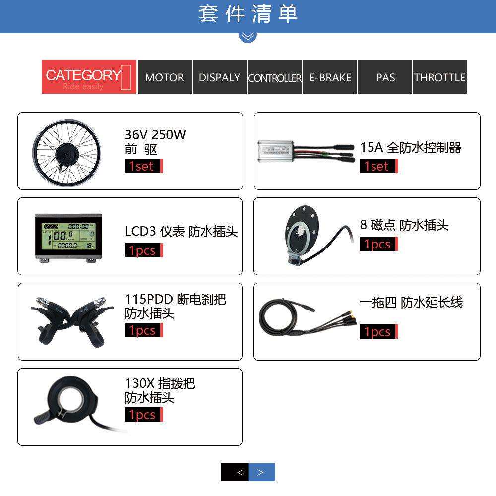 📚 山地车锂电改装助力36V250W前驱防水套件/昆腾LCD3速度显示仪表