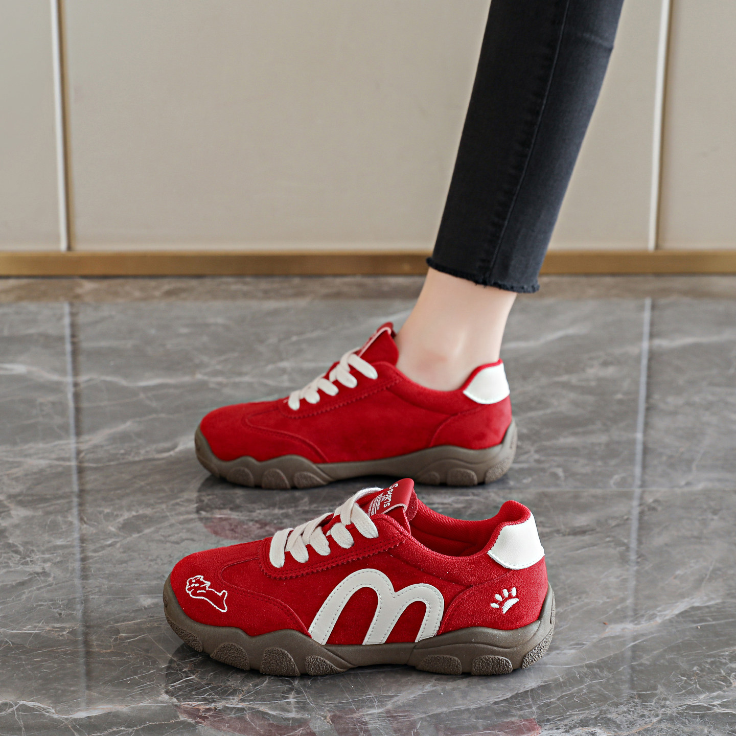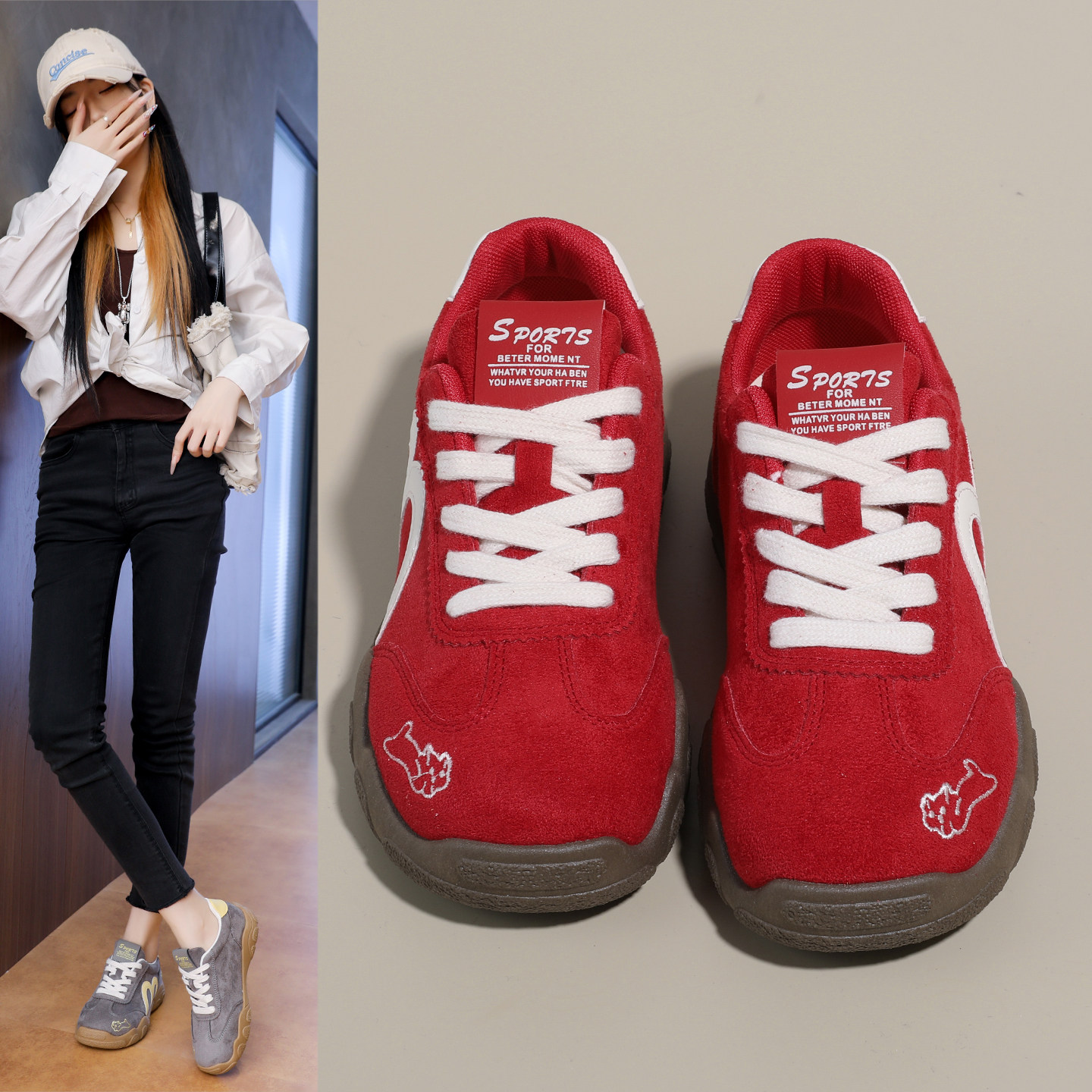 📚 红色鞋子本命年小红鞋阿甘鞋女款德训鞋春季老北京布鞋妈妈运动鞋