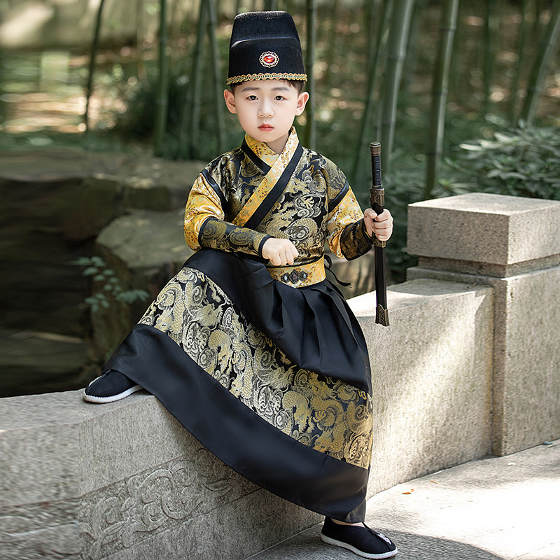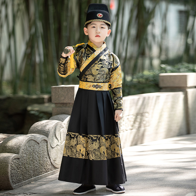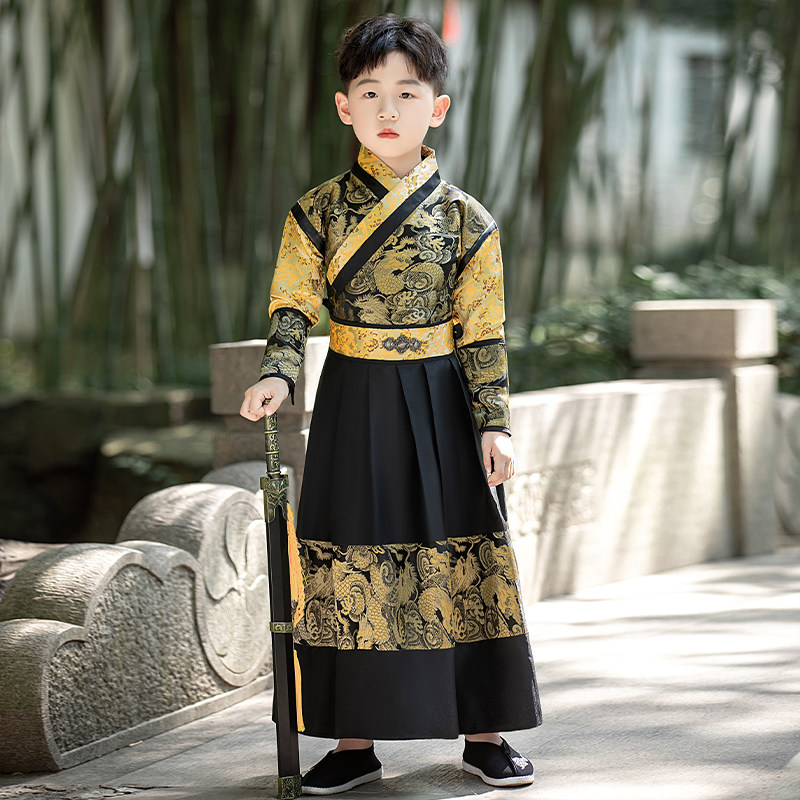 📚 男童明制汉服演出服明朝锦衣卫龙腾武侠古装中国风带披风唐装冬季