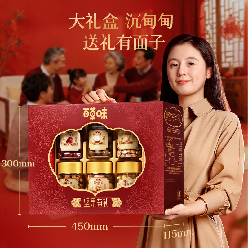 📚 百草味坚果+零食大礼包礼盒1320g年货节干果健康高端食品送礼长辈