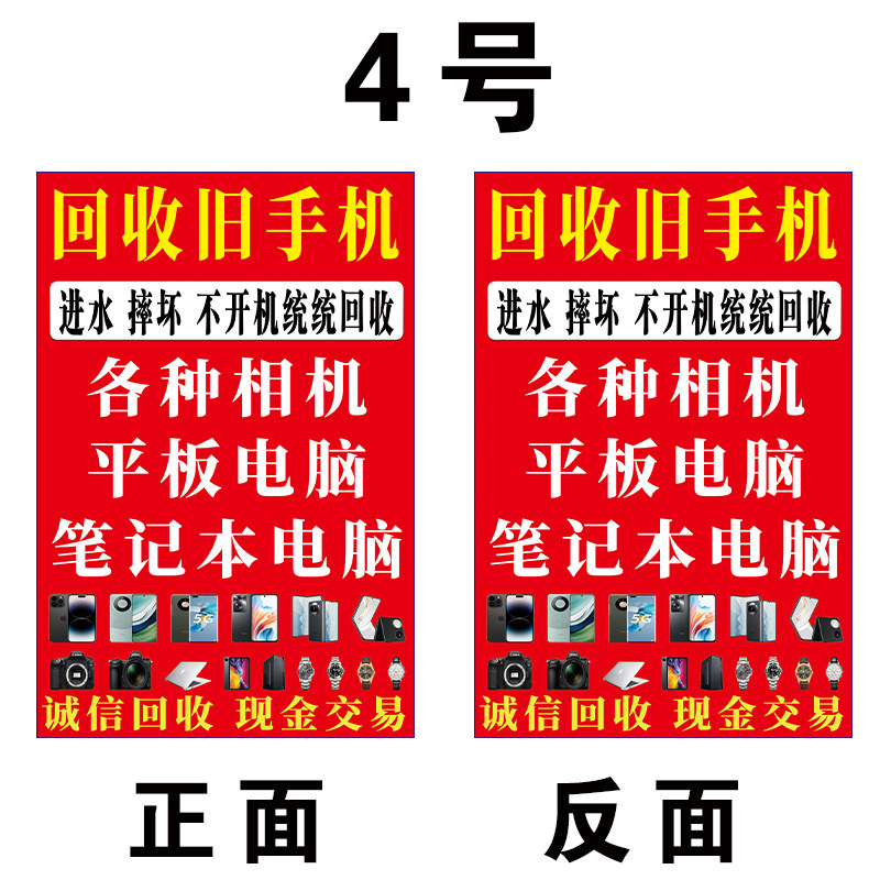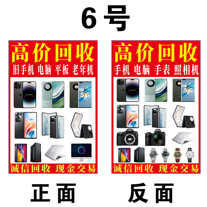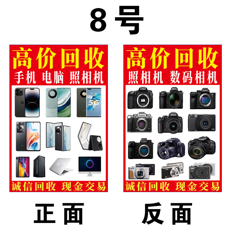 📚 旧手机广告牌三角牌KT板收相机手表电脑数码相机摆台回收喷绘布