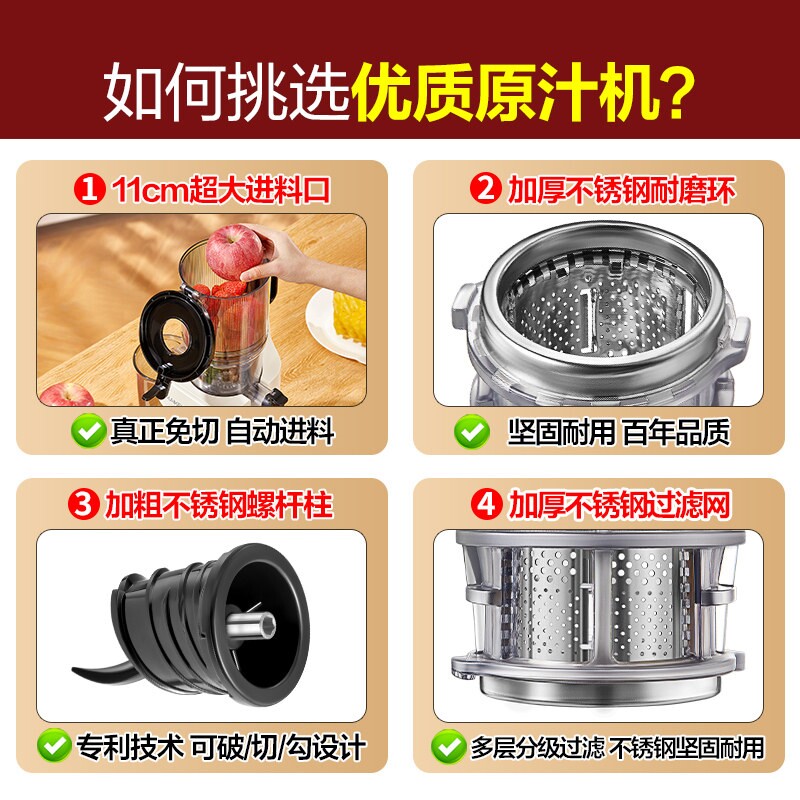 📚 麦可酷榨汁机汁渣分离原汁机家用自动渣汁慢磨大口径榨果汁免切全