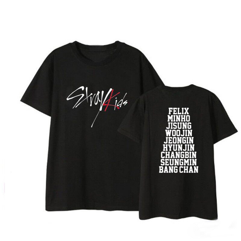 📚 straykids衣服韩版宽松学生情侣夏新款黑白stray kids短袖T恤女