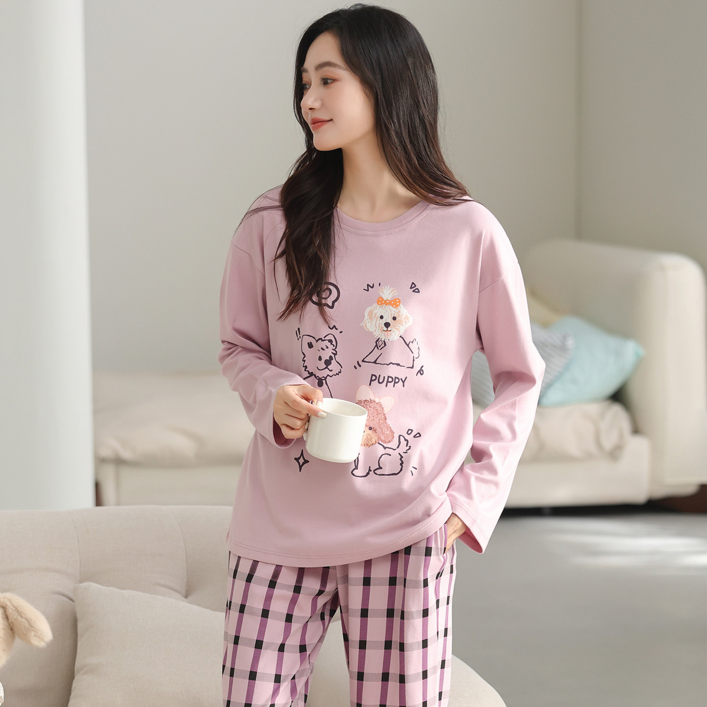 📚 芬腾睡衣女士春秋季纯棉长袖套装可爱女款休闲大码全棉家居服秋天
