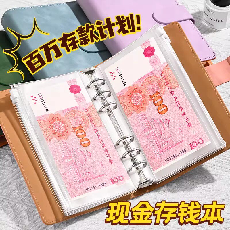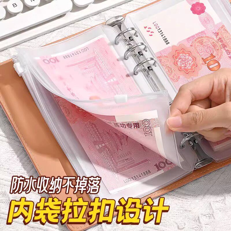📚 2025年新款存钱本现金百元收纳册网红现金收藏册大容量理财防水人民币收藏册存钱夹钱册活页存钱袋带密码锁