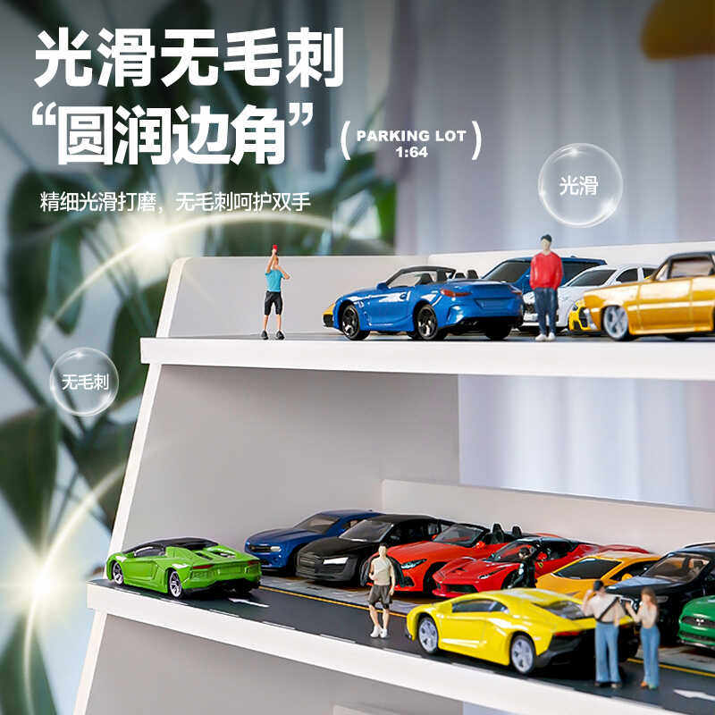 📚 1/64小车收纳停车场儿童仿真场景展示柜汽车模型合金玩具车车架