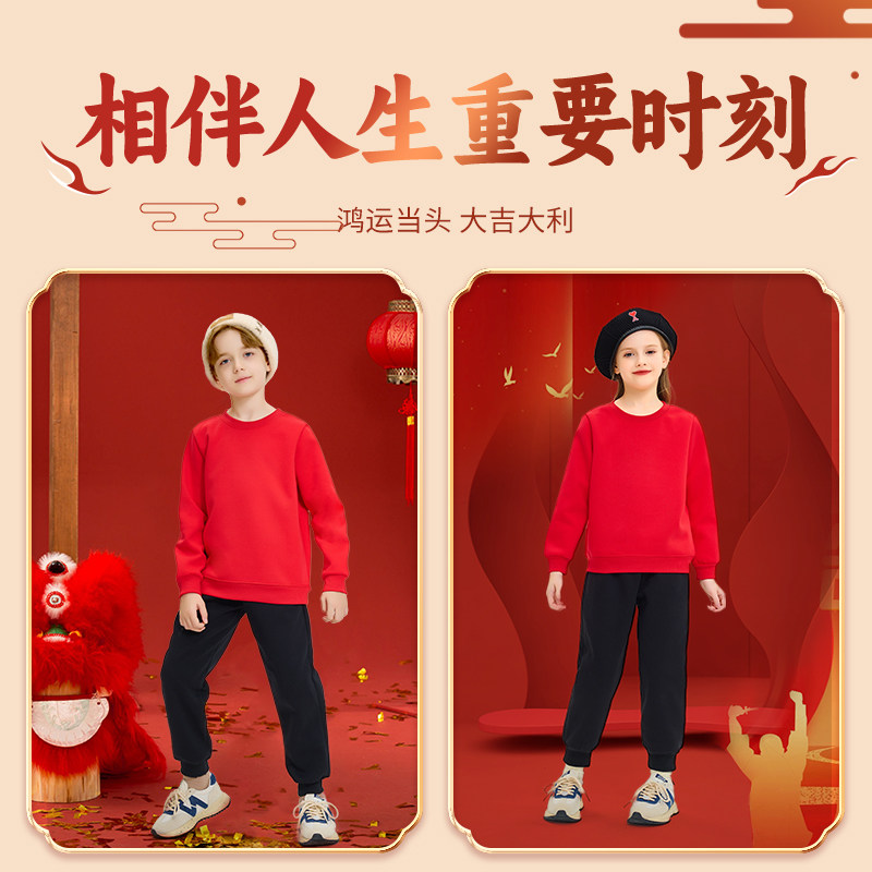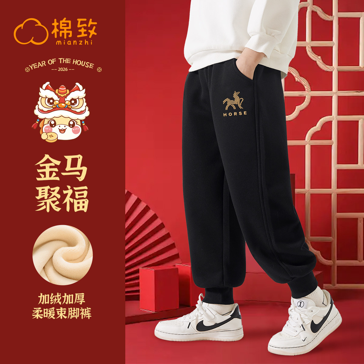 📚 棉致男童冬季加绒裤子2026新款冬款红色过年马年新年绒裤儿童棉裤