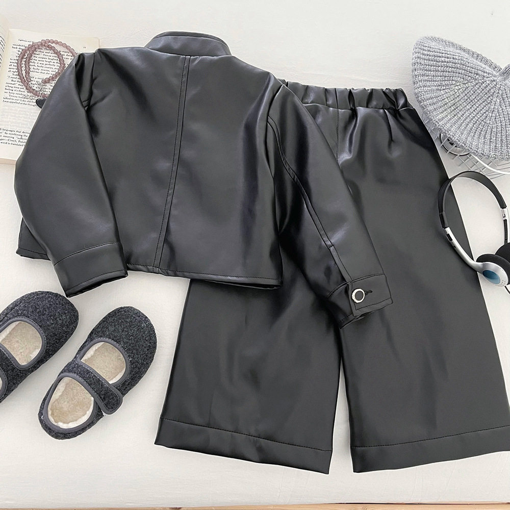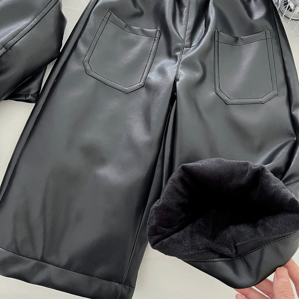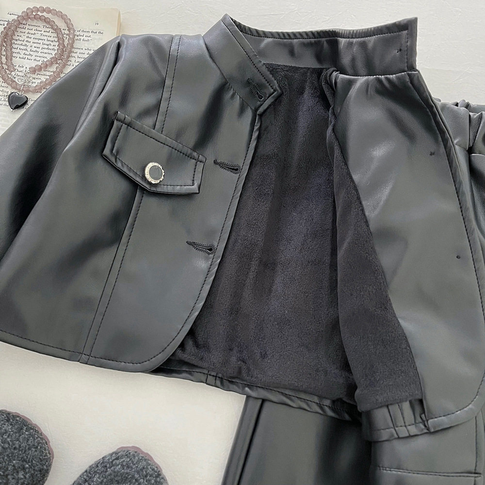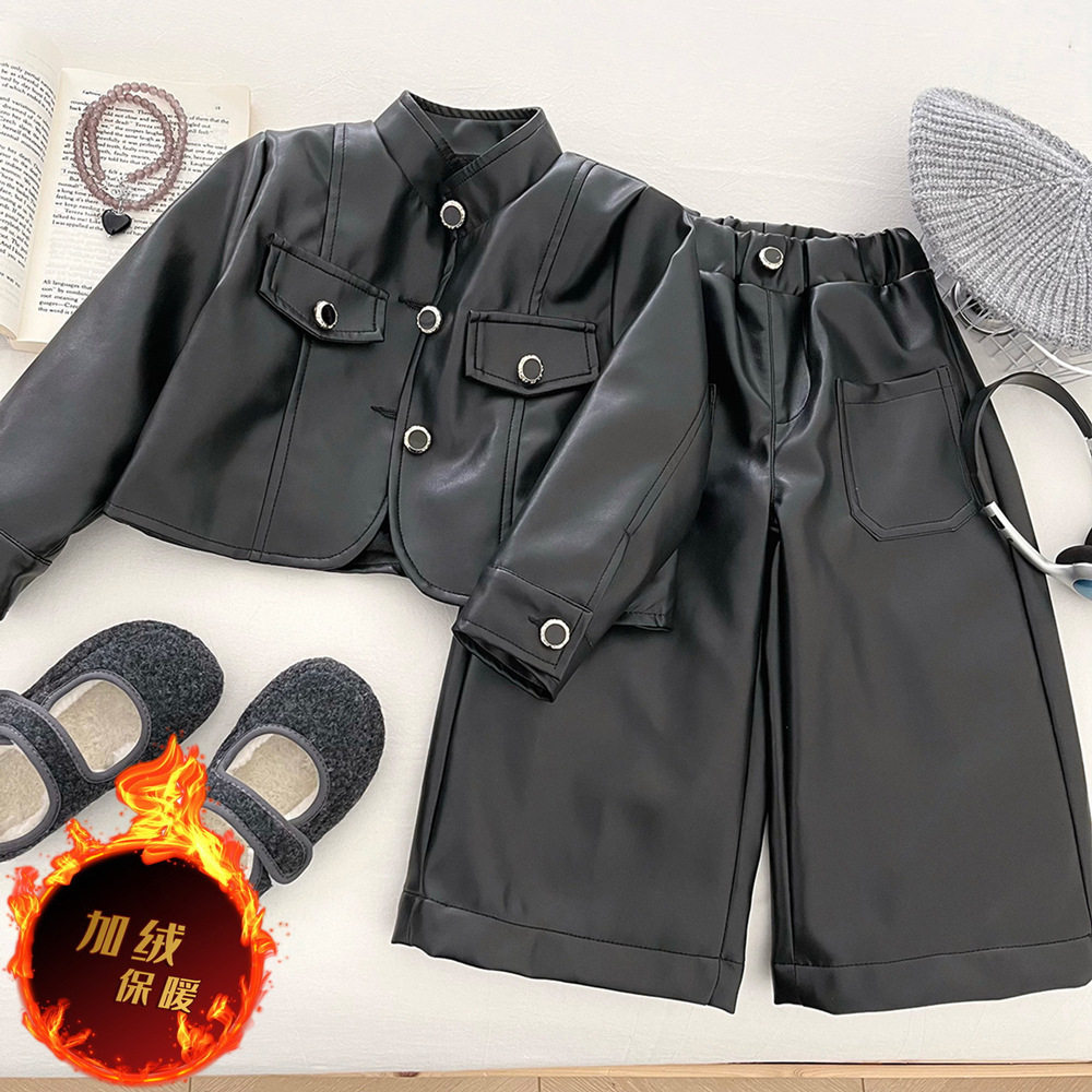 📚 女童加绒皮衣外套两件套冬季2025新款儿童洋气时髦pu皮夹克套装潮