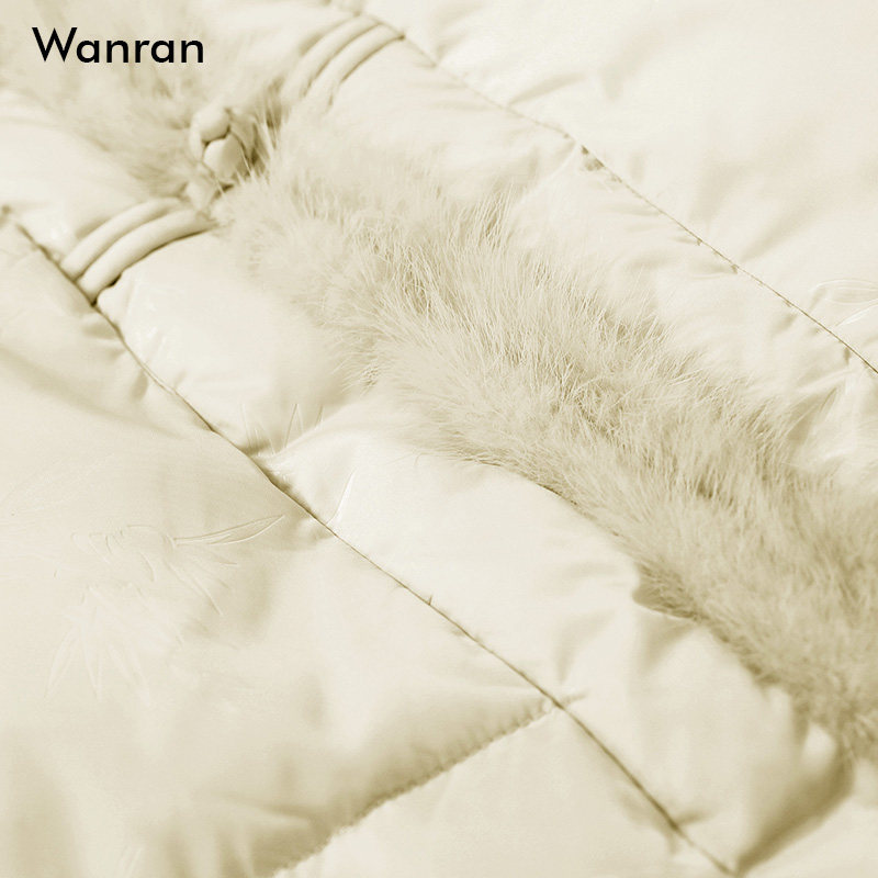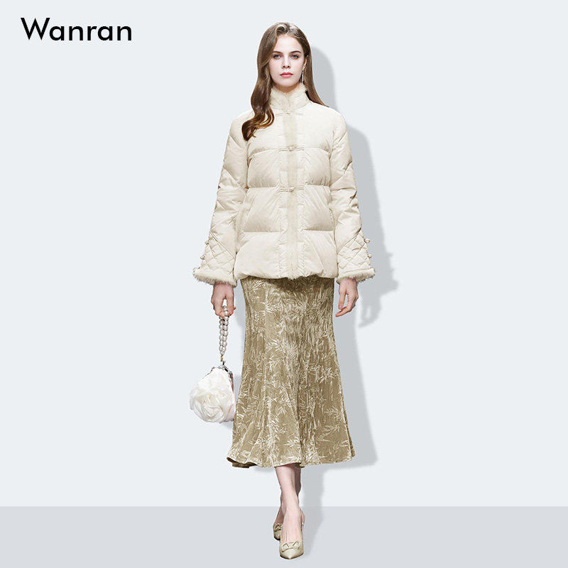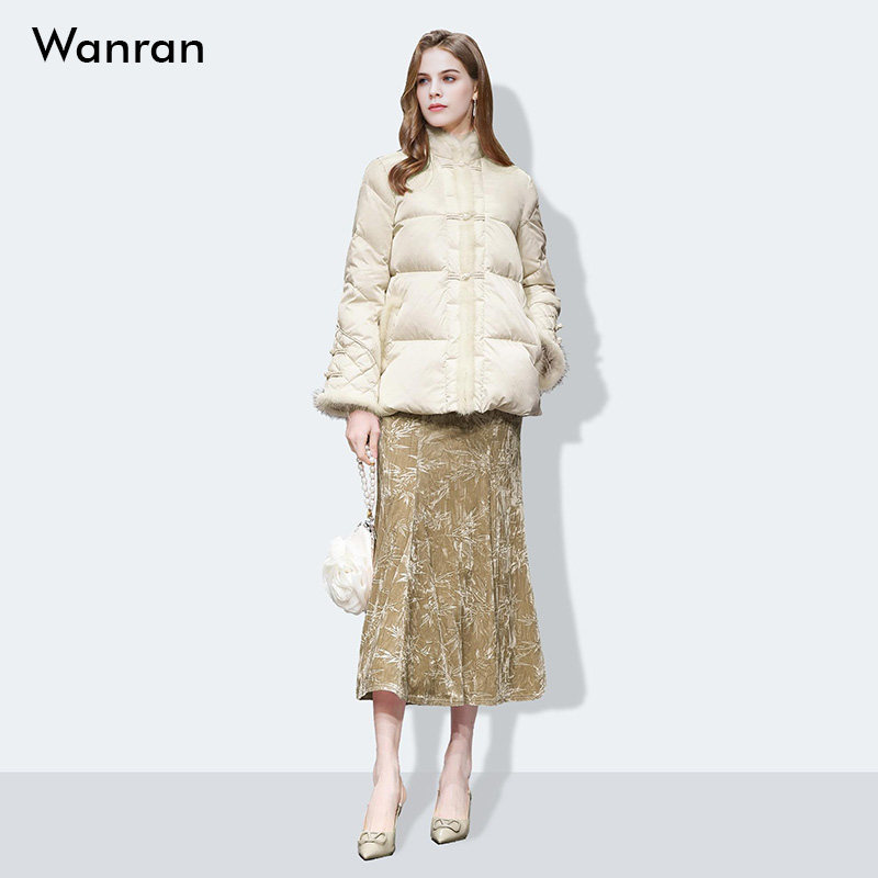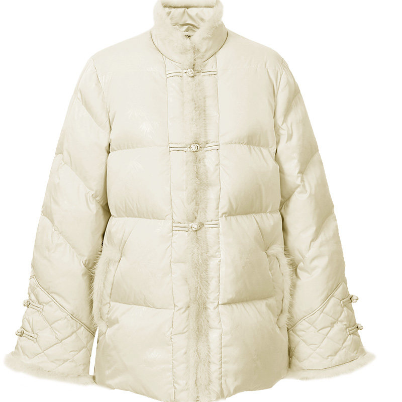 📚 2025冬季立领盘扣貂毛新中式国风竹叶压花短款燕麦可可色羽绒服女
