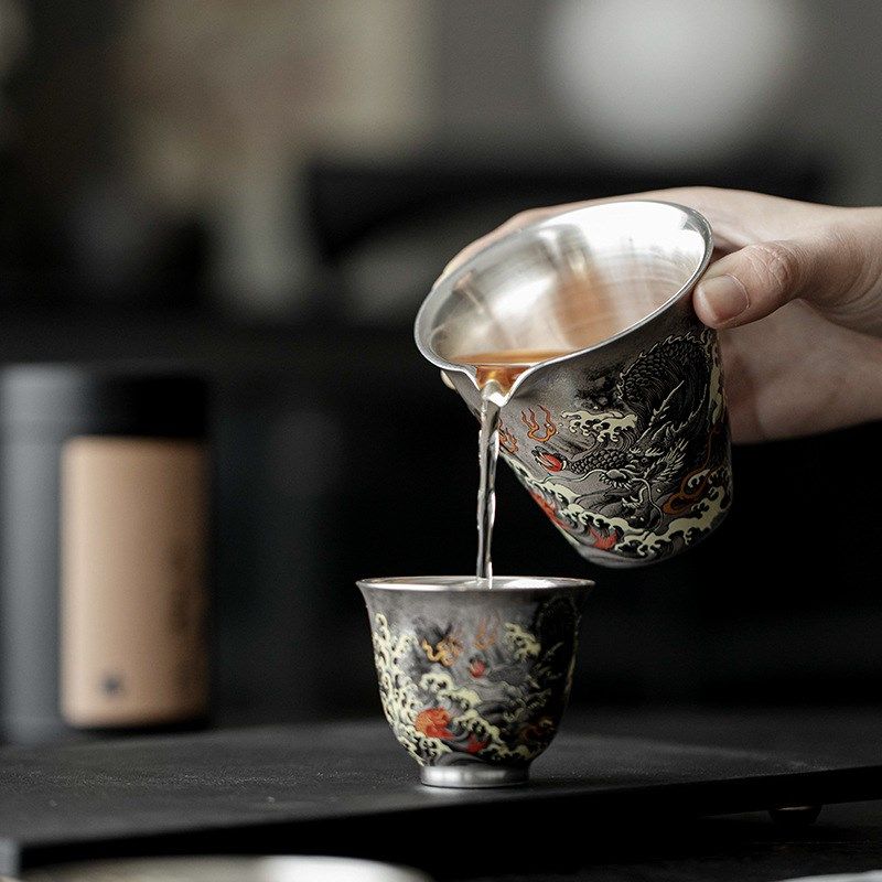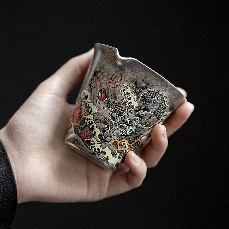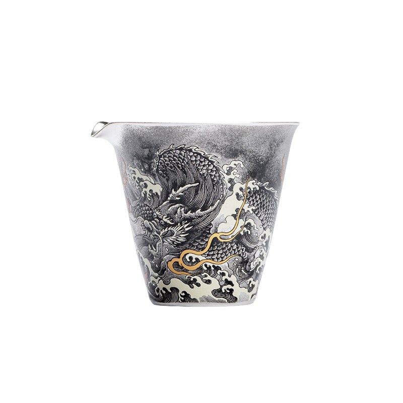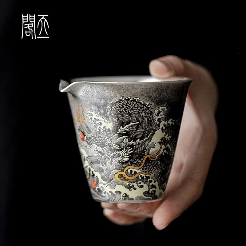 📚 天一阁丨999纯银鎏银墨龙公道杯陶瓷禅意分茶器功夫茶具茶海匀杯
