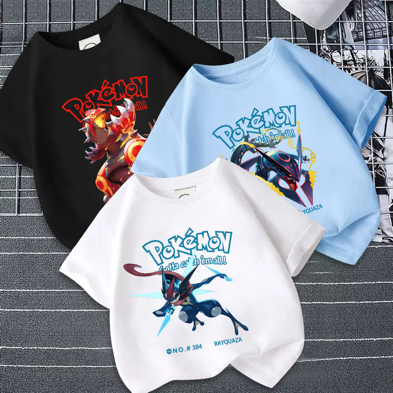 📚 精灵宝可梦联名T恤短袖男大童神奇宝贝烈空坐 固拉多甲贺忍蛙衣服