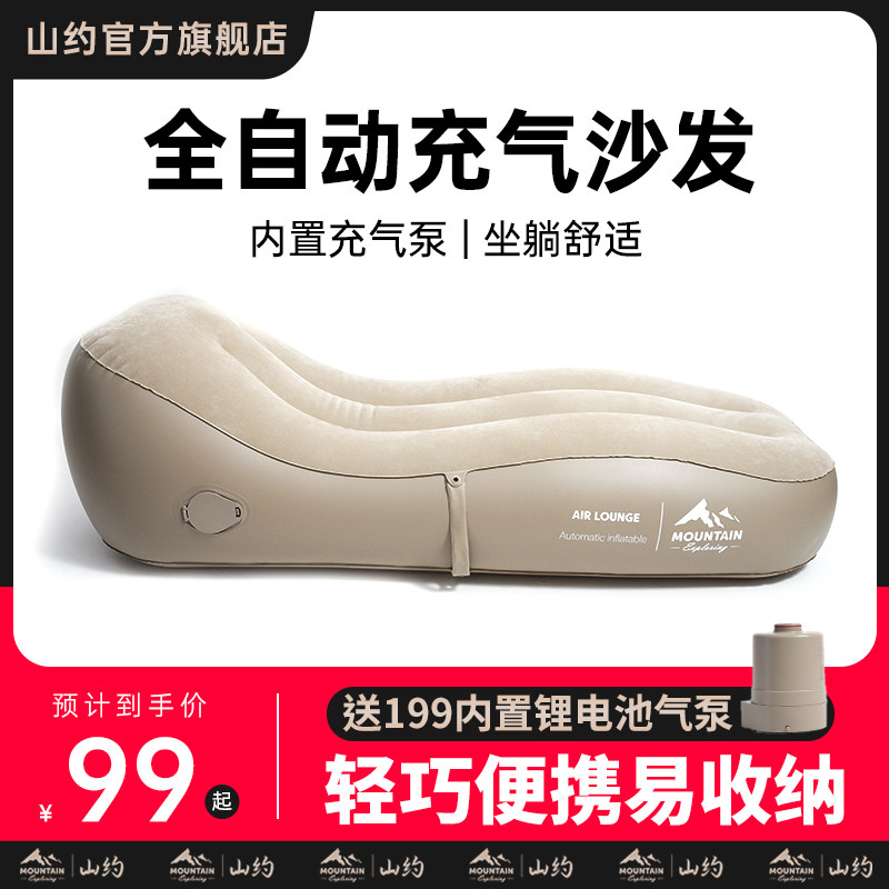 📚 山约充气沙发户外便携气垫床懒人午休露营休闲自动充气床空气躺椅