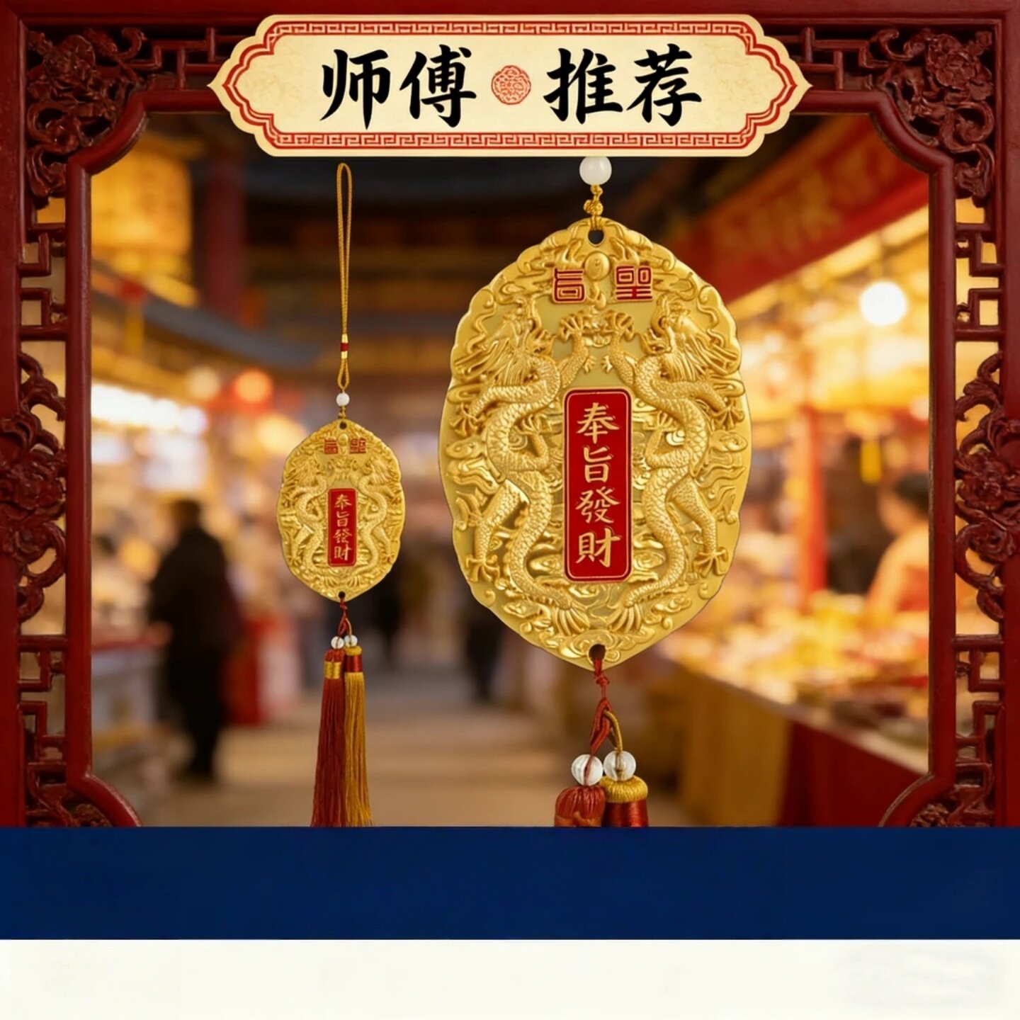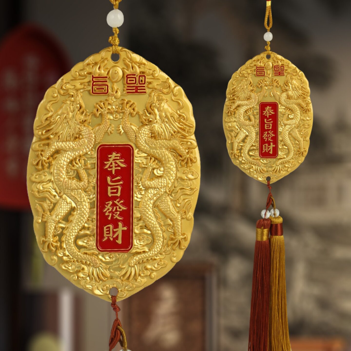 📚 师傅推荐五台山龙五爷奉旨发财双龙图案令牌中国风挂件启福德文化
