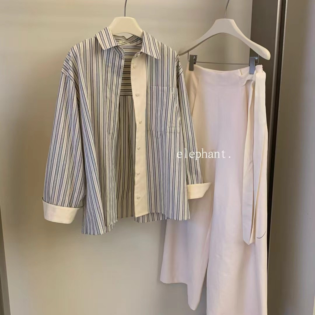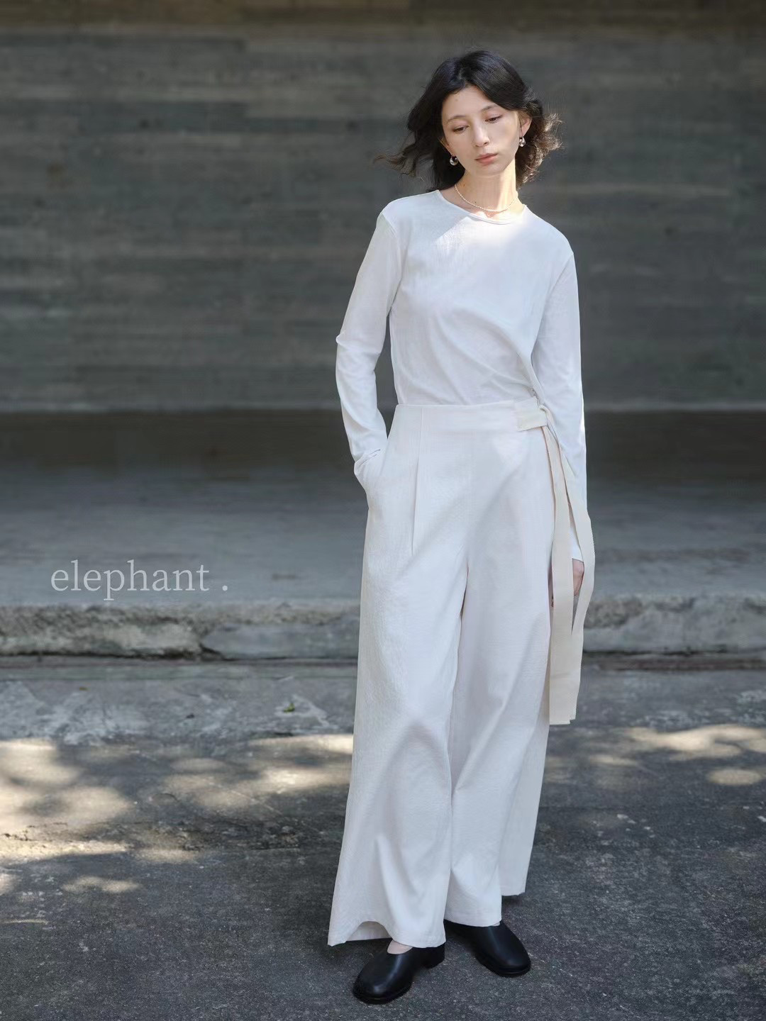 📚 新品韩国elephant大象家简约高级极简侧绑带抗皱休闲直筒裤麻料裤